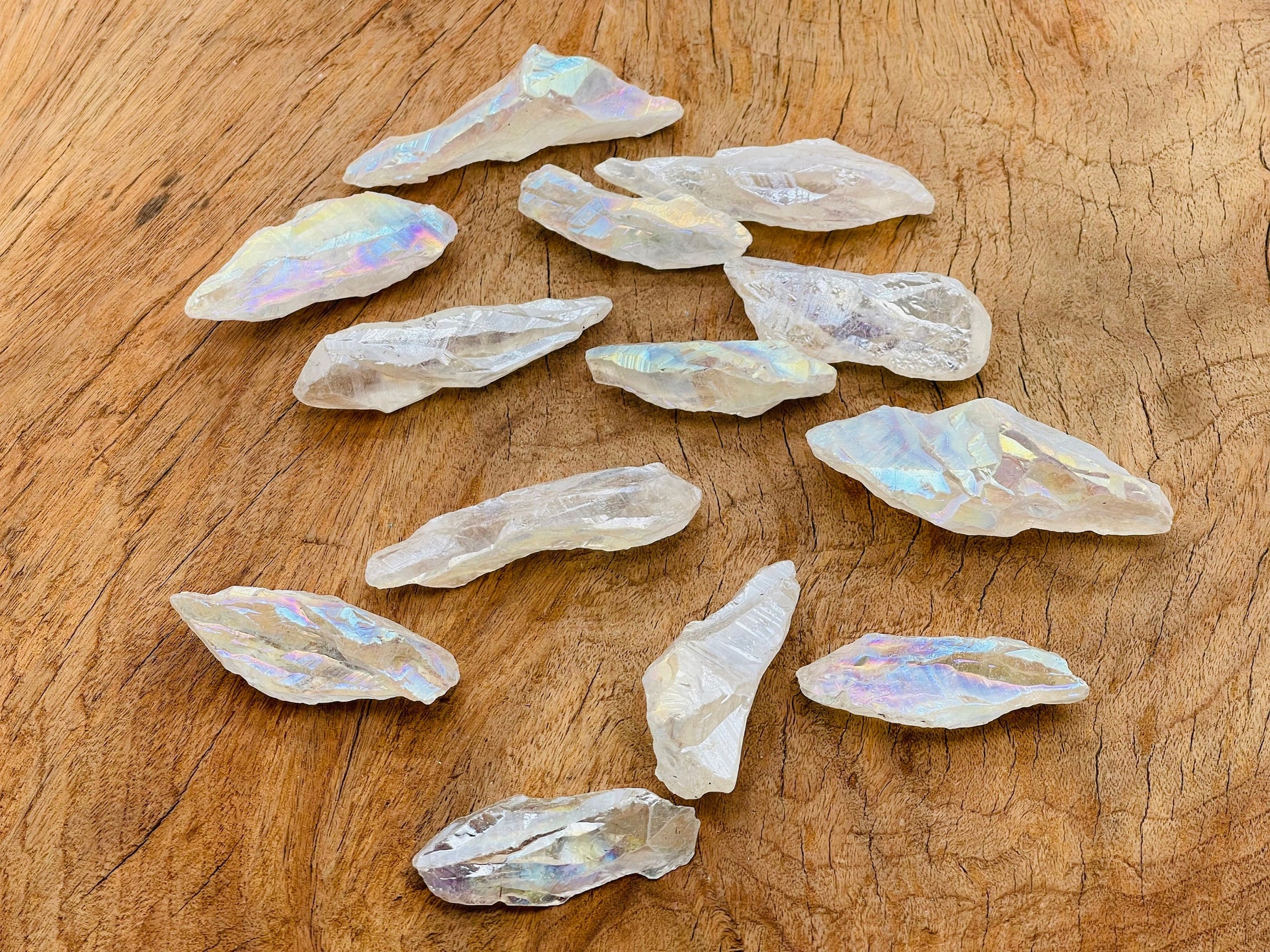 Unit price / perAura Quartz is known as a stone of high vibration, positivity, and spiritual upliftment. It is natural quartz that has been bonded with precious metals (like gold, titanium, or platinum), giving it a rainbow-like glow and enhanced energetic qualities.