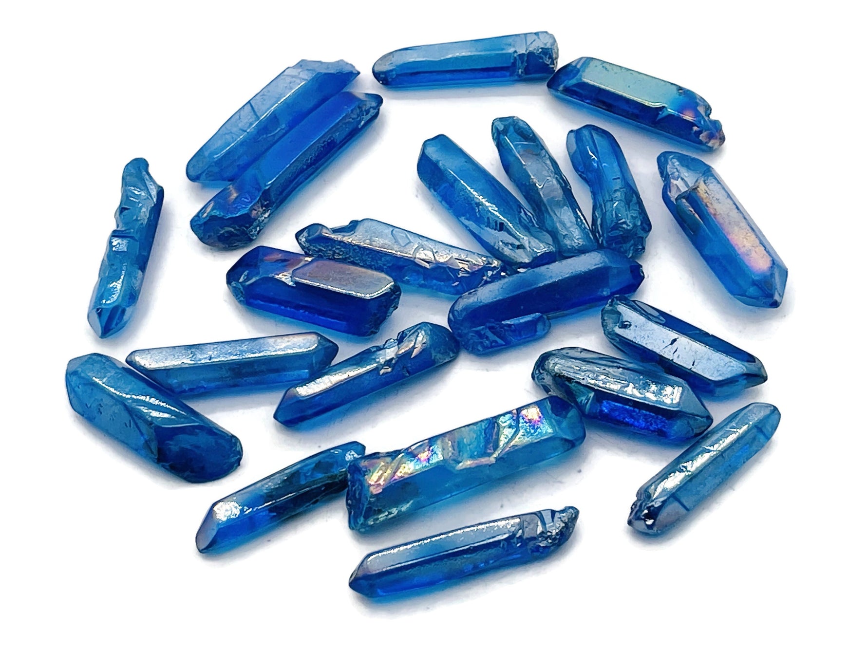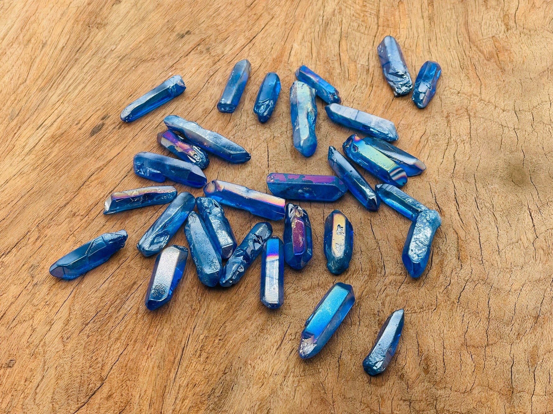 Unit price / perAura Quartz is known as a stone of high vibration, positivity, and spiritual upliftment. It is natural quartz that has been bonded with precious metals (like gold, titanium, or platinum), giving it a rainbow-like glow and enhanced energetic qualities.