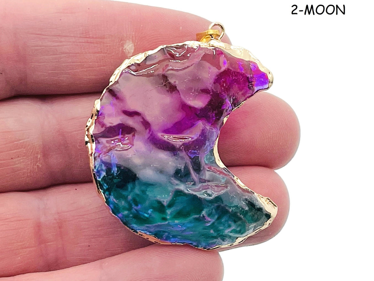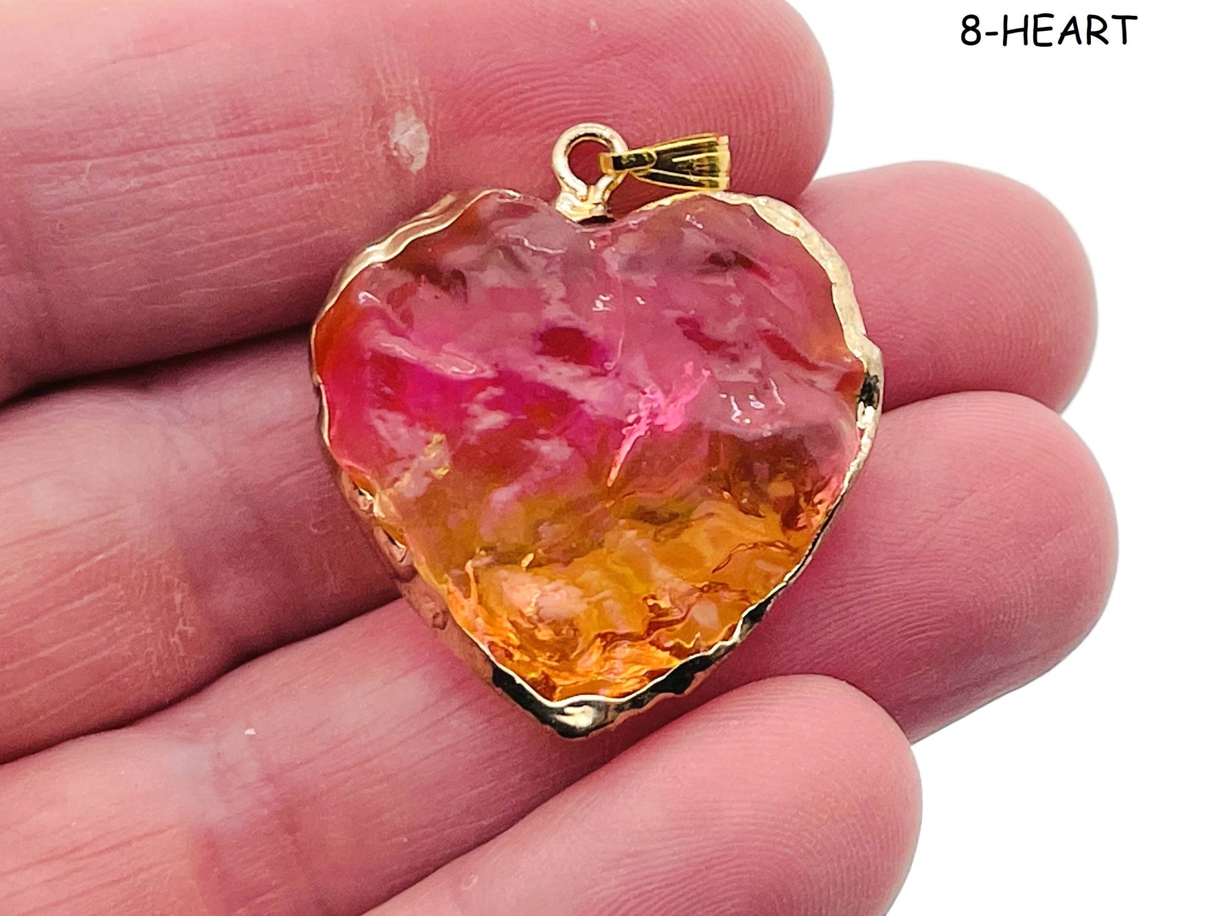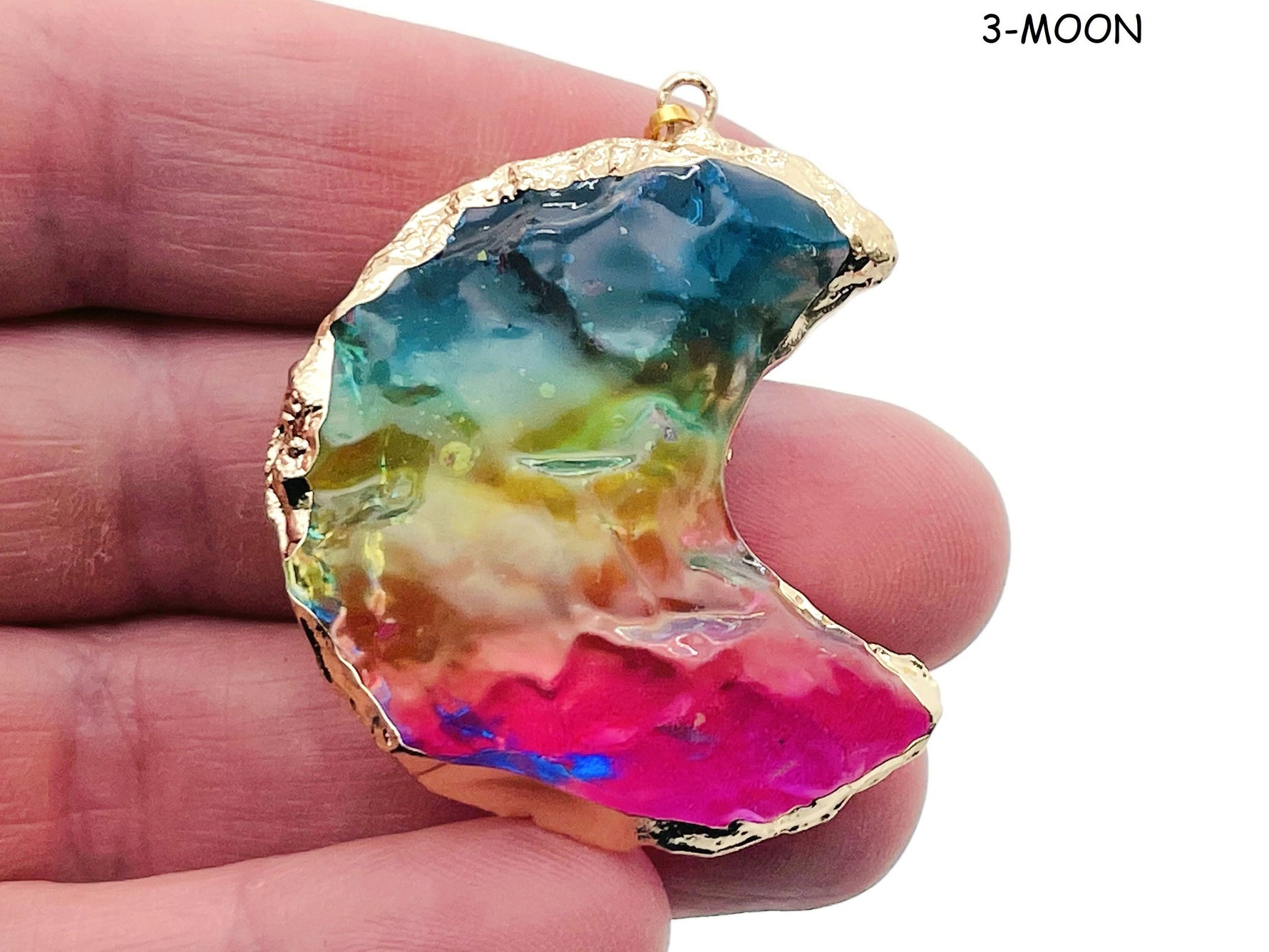 Rainbow Aura Heart Crystal Pendant - Moon-Star-Heart - Loose Crystal - MIX