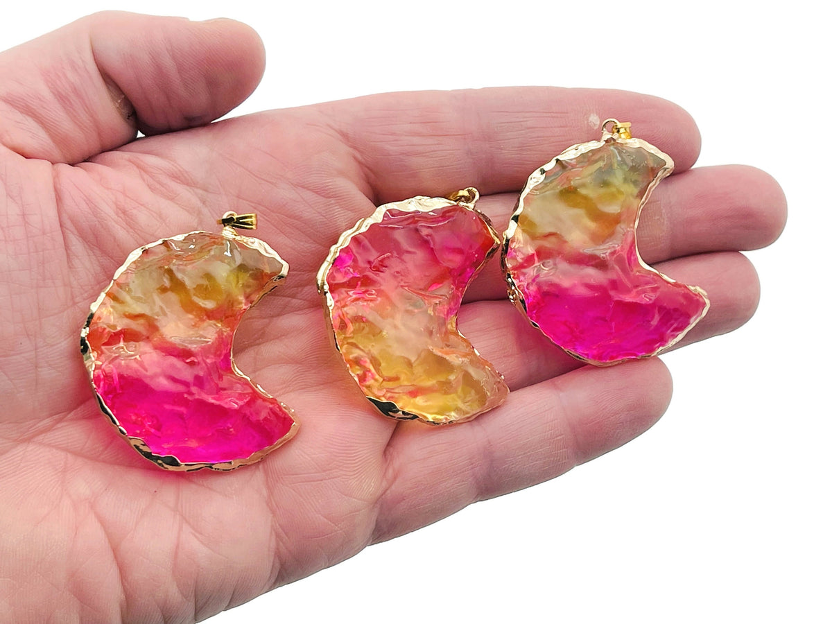 Rainbow Aura Moon Crystal Pendant - Yellow-Pink Quartz - Love Stone - NC1220
