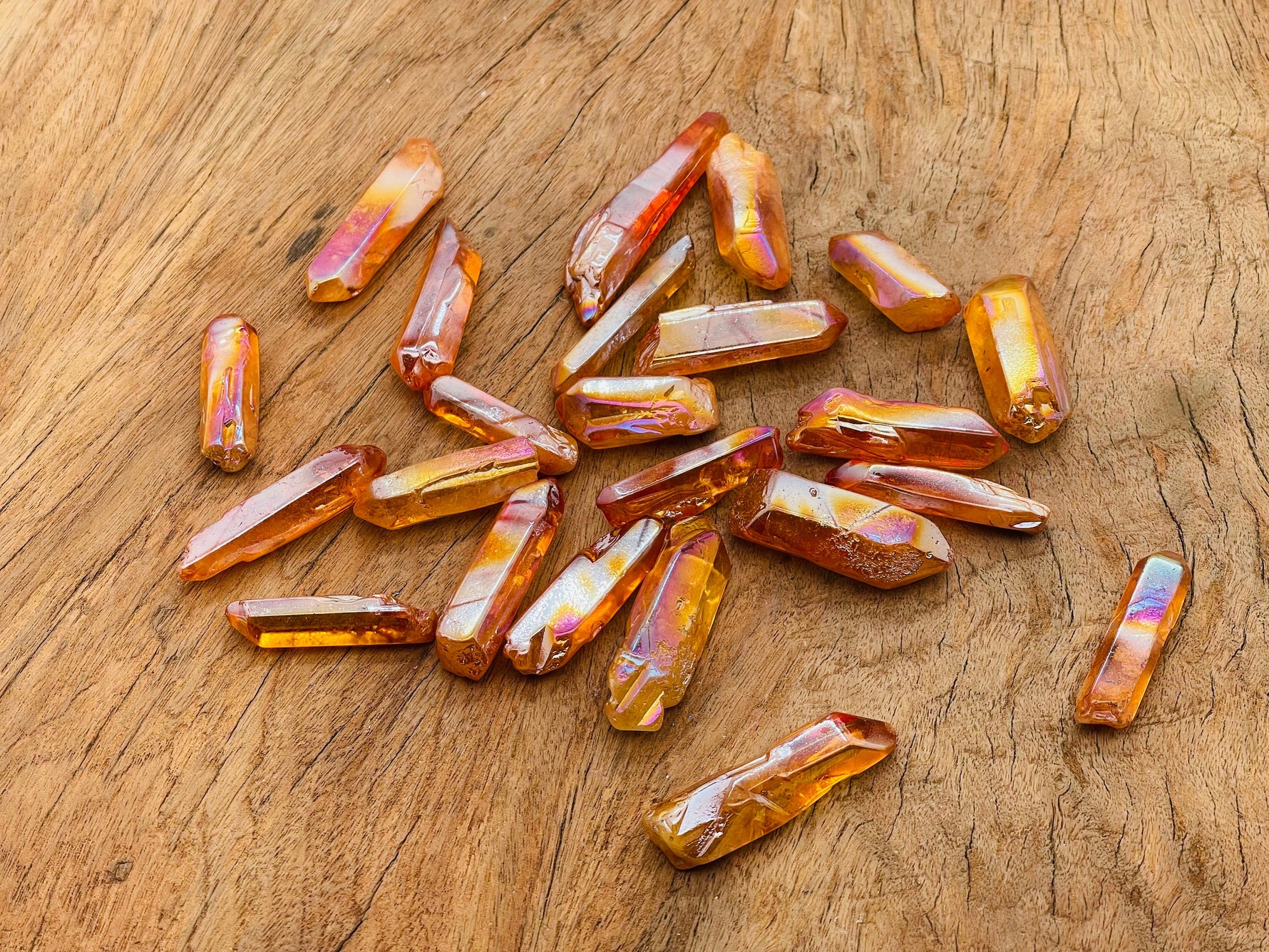 Unit price / perAura Quartz is known as a stone of high vibration, positivity, and spiritual upliftment. It is natural quartz that has been bonded with precious metals (like gold, titanium, or platinum), giving it a rainbow-like glow and enhanced energetic qualities.