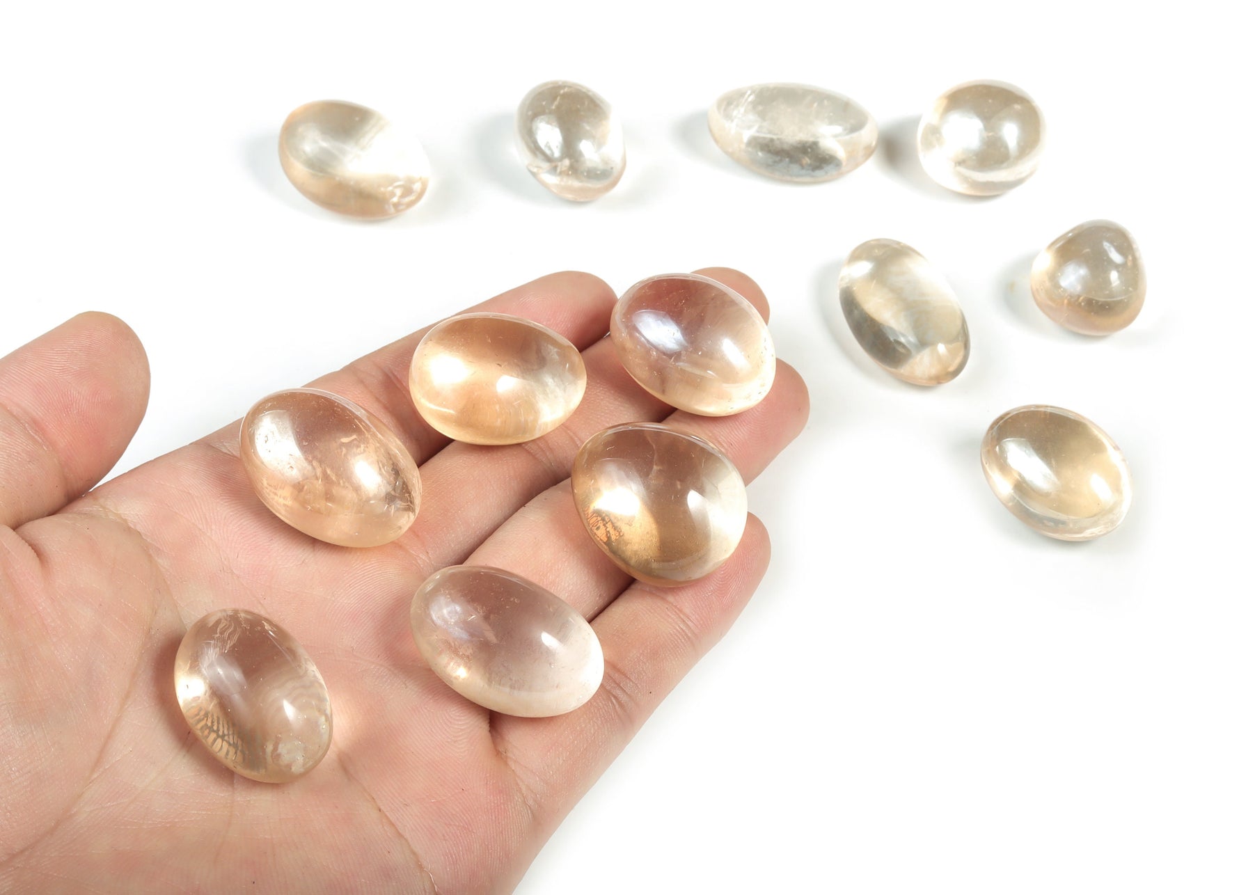 These beautiful tangerine aura stones are perfect to use for spiritual work, jewelry making, and gifts. The natural yellow color of Tangerine Quartz makes it more unique and beautiful. This crystal is bringing us some joy and fun. Tangerine Quartz is a crystal of perseverance and strength. It exhibits an energy that allows a clearer understanding of the events that will affect you and your life.