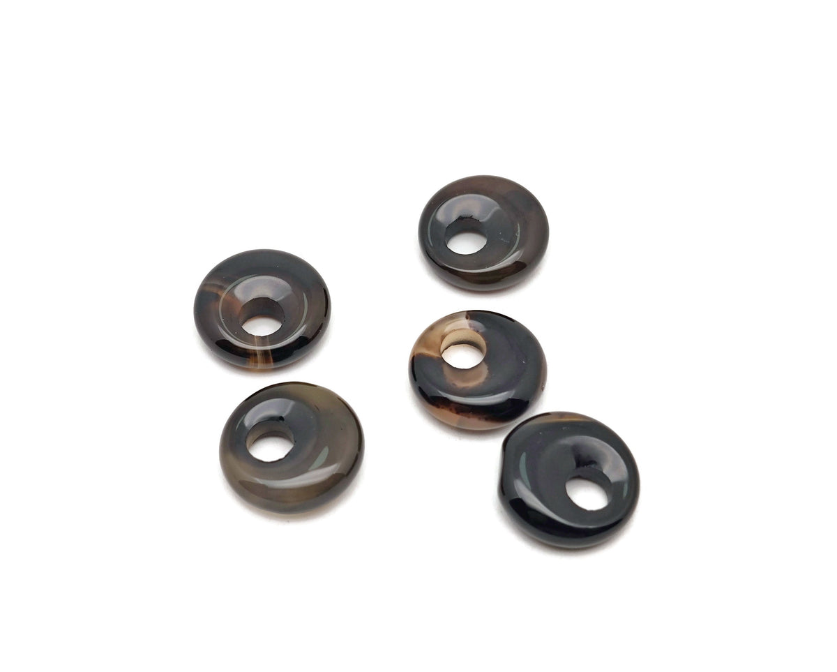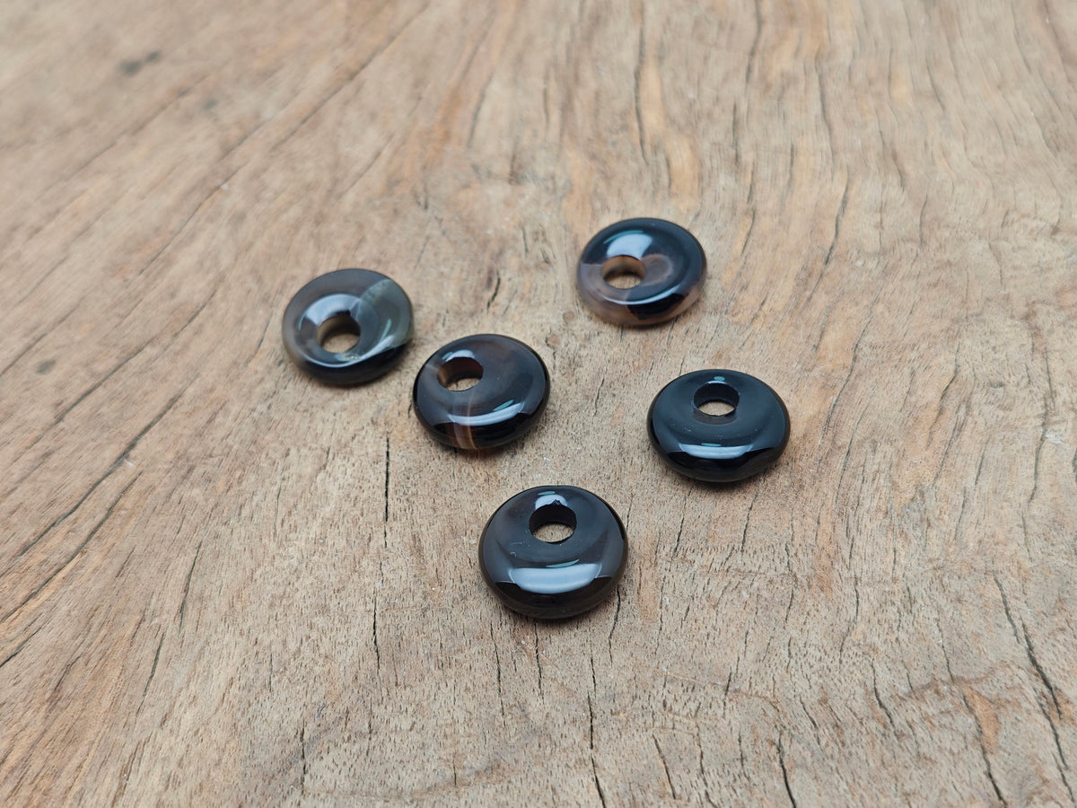 Black Agate Crystal Donut - Pi Stone - 18mm - DO1039