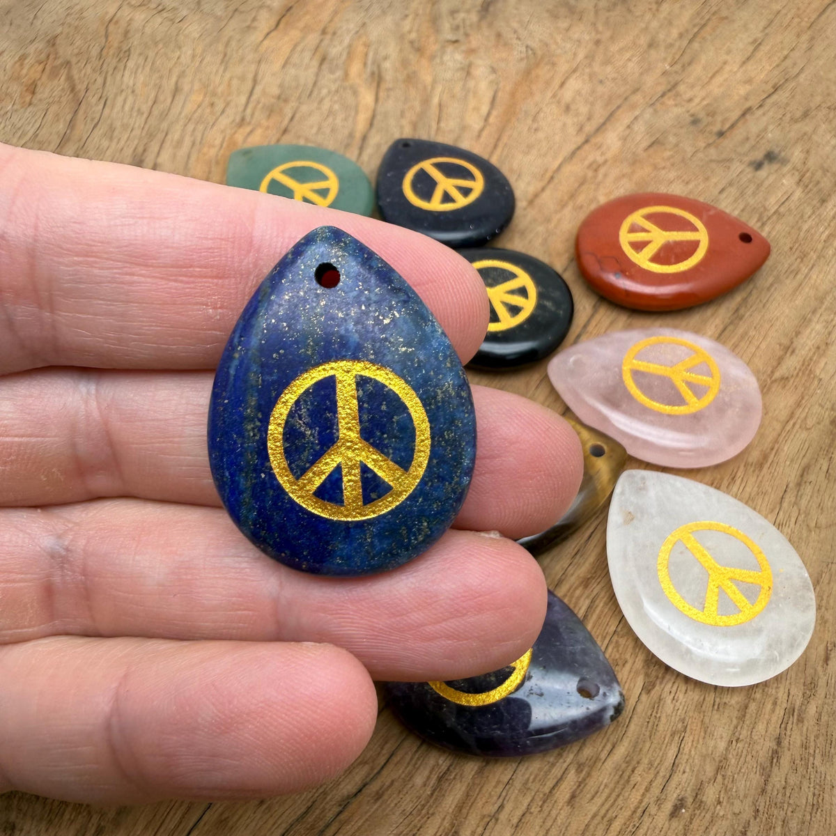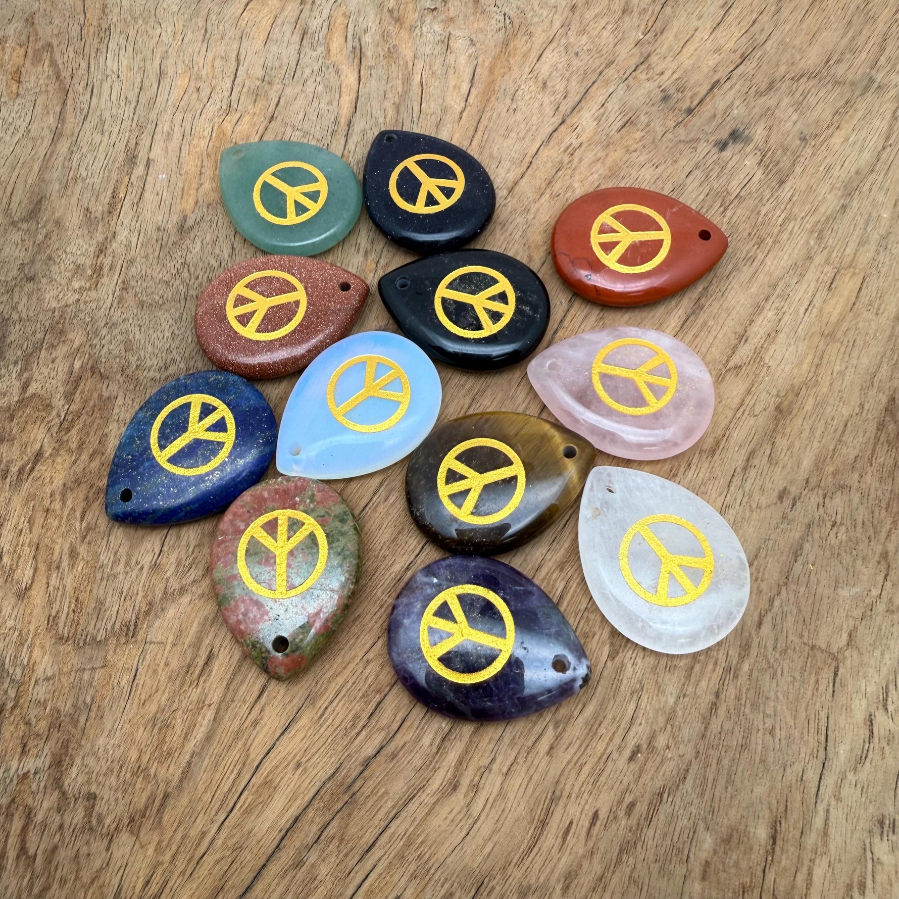 Peace Symbol Engraved Crystal - Drilled Charm for Calm, Harmony & Positive Energy