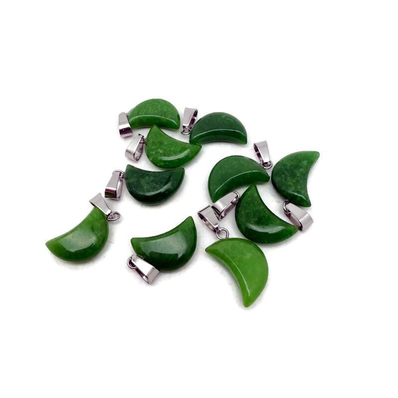 Green Jade Moon Crystal Pendant - Jewelry Making Supplies - MNC1027