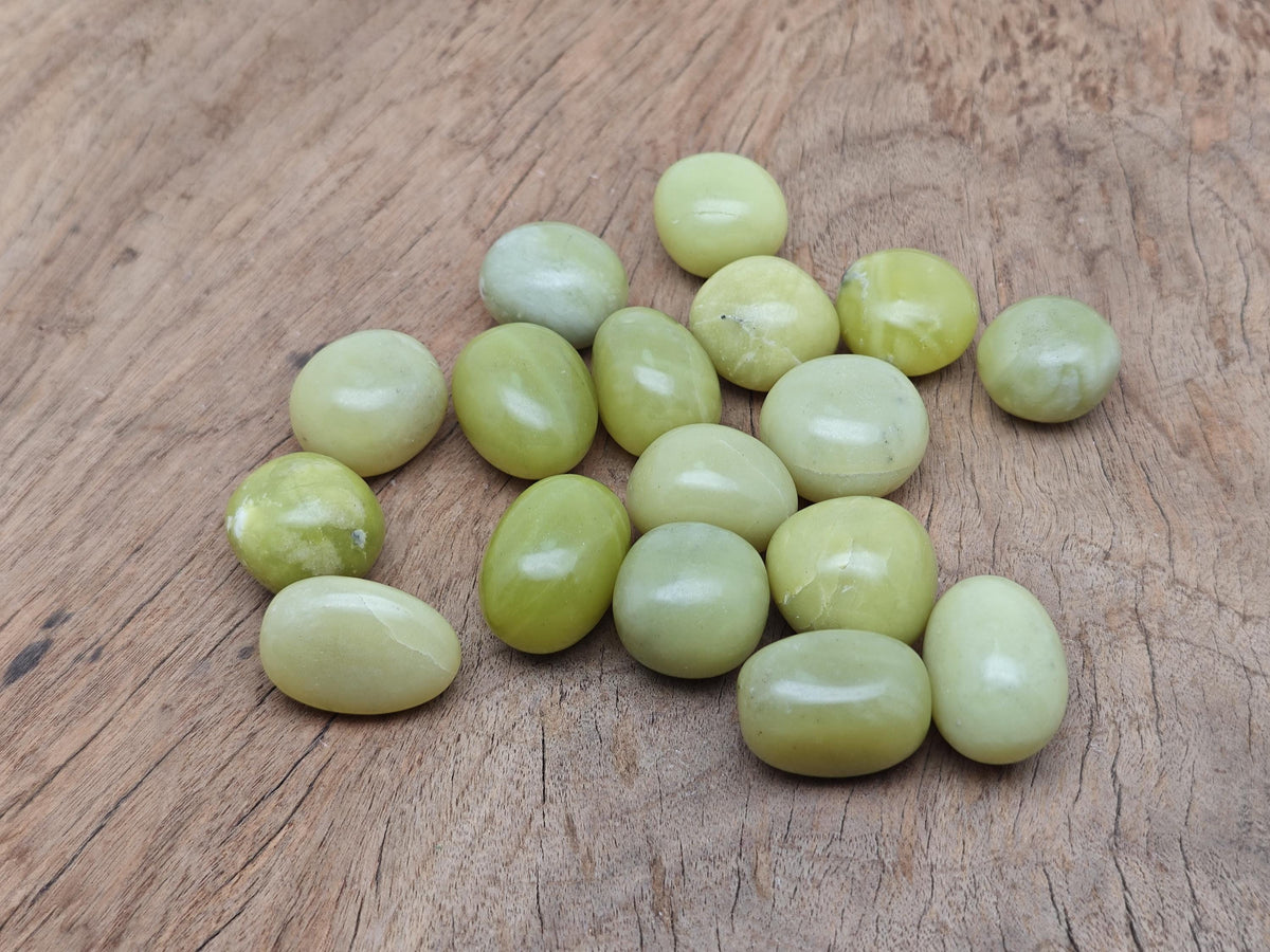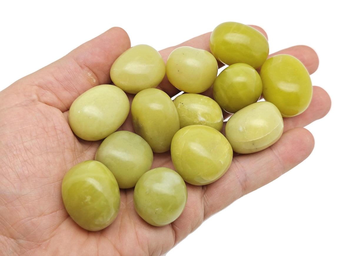 Green Olive Stone (often a trade name for olive-green jasper, serpentine, or dyed agate) is known as a symbol of peace, balance, and renewal. Its olive-green color connects it with nature, harmony, and steady growth.