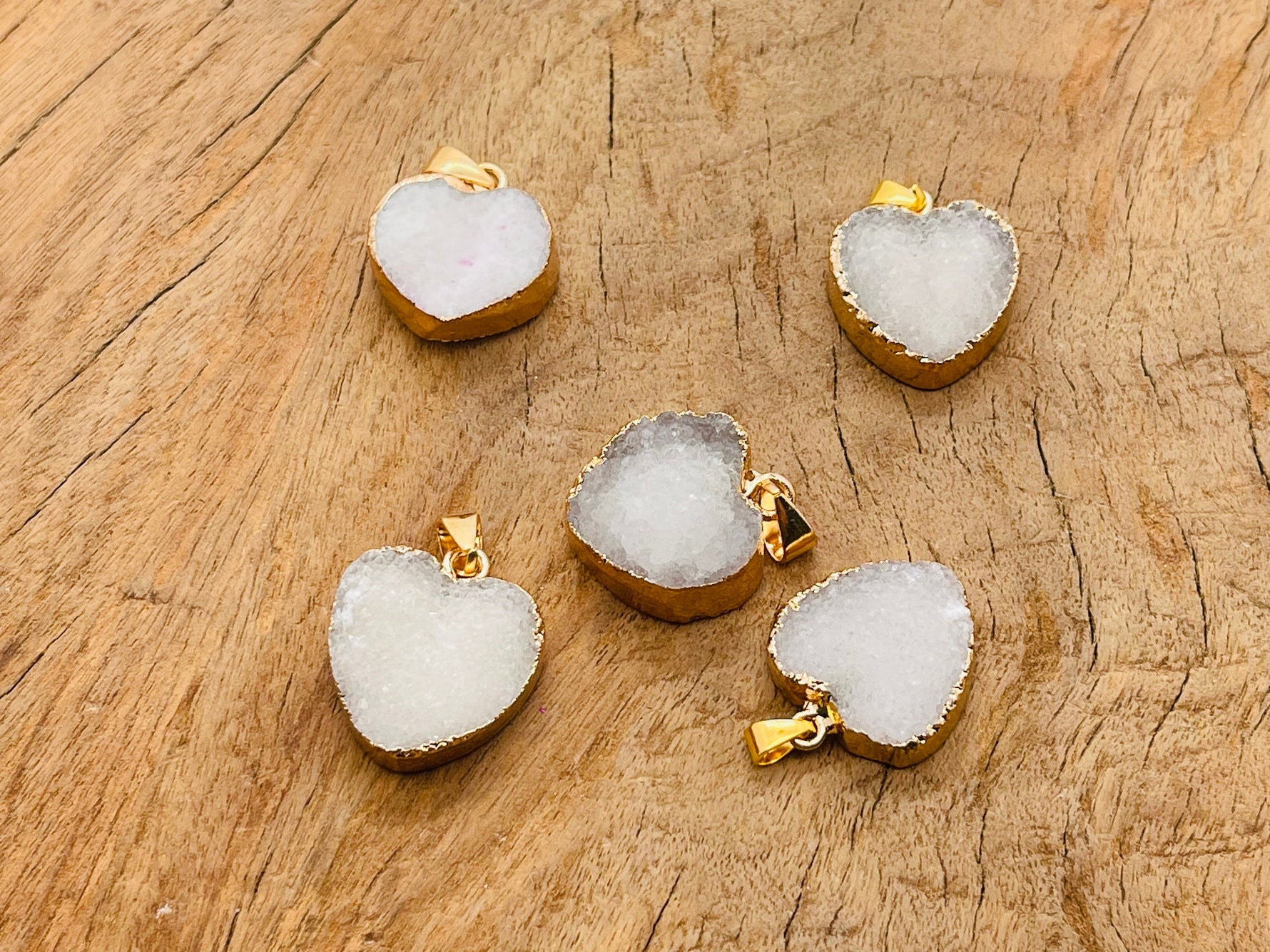 White Agate Heart Geode Druzy Slice Crystal Pendant - Oco Agate Geode Pendant - NC1259