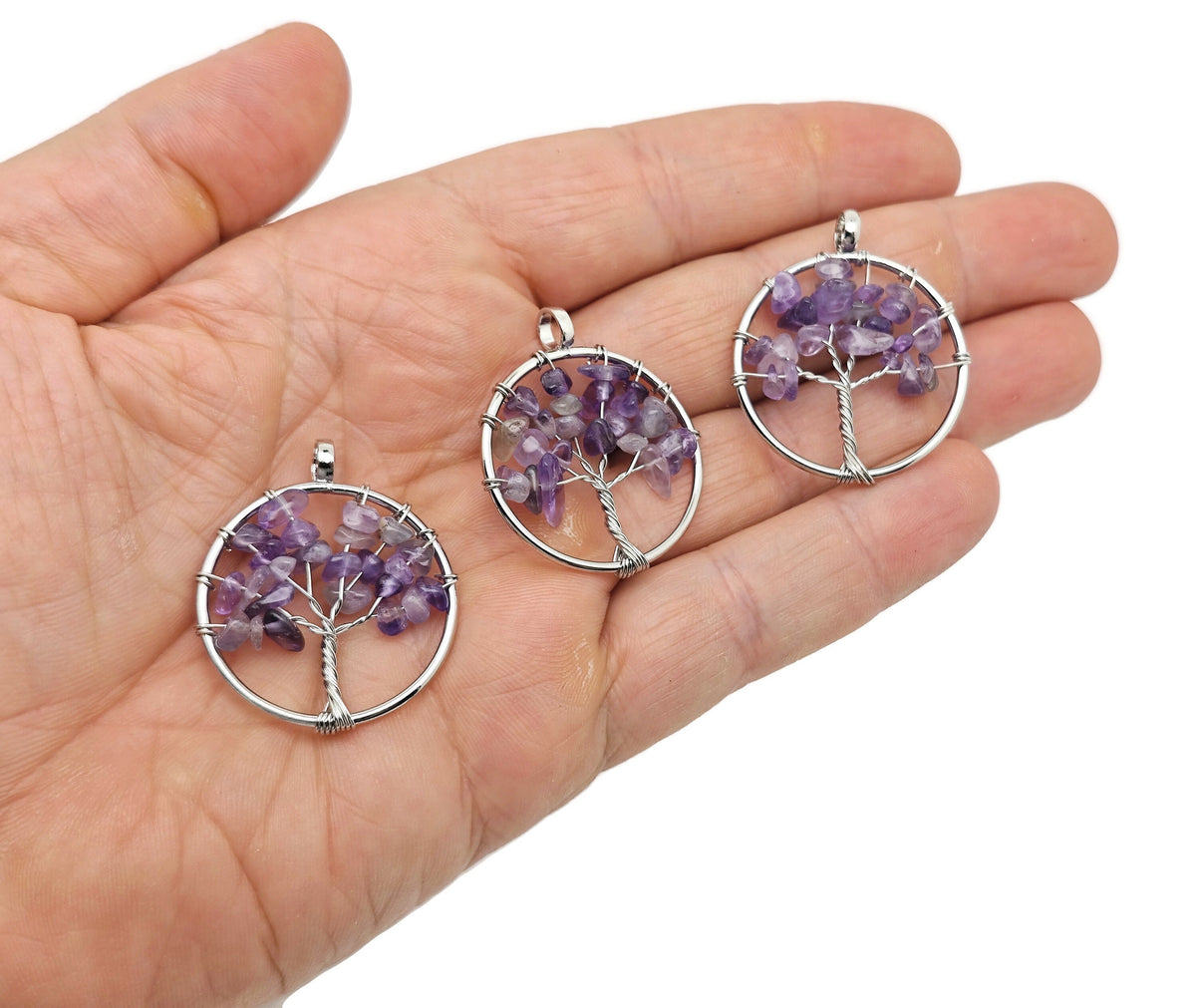 Pendentifs Arbre de Vie en Améthyste - Cristaux en Gros - Bijoux Arbre de Vie en Cristal Faits Main - Pendentifs de Guérison - NC1575