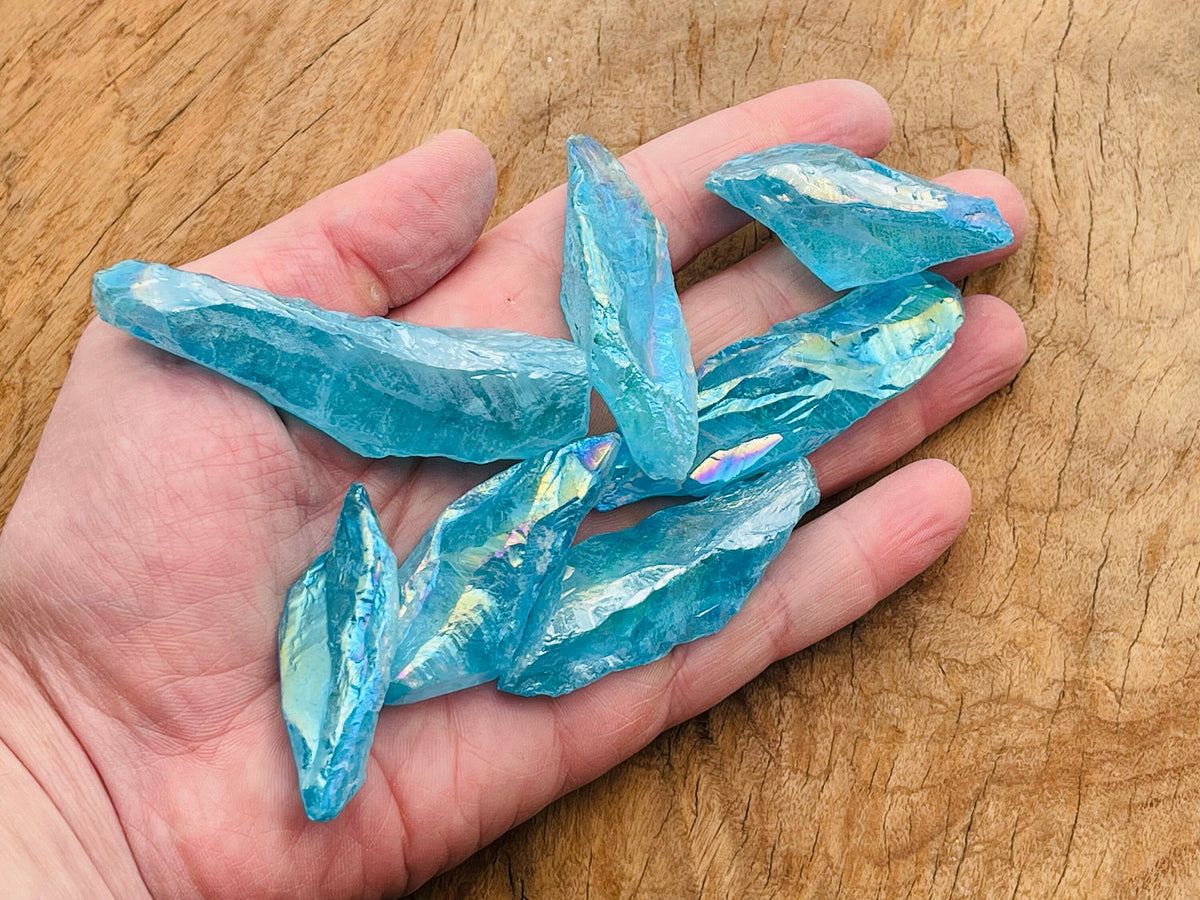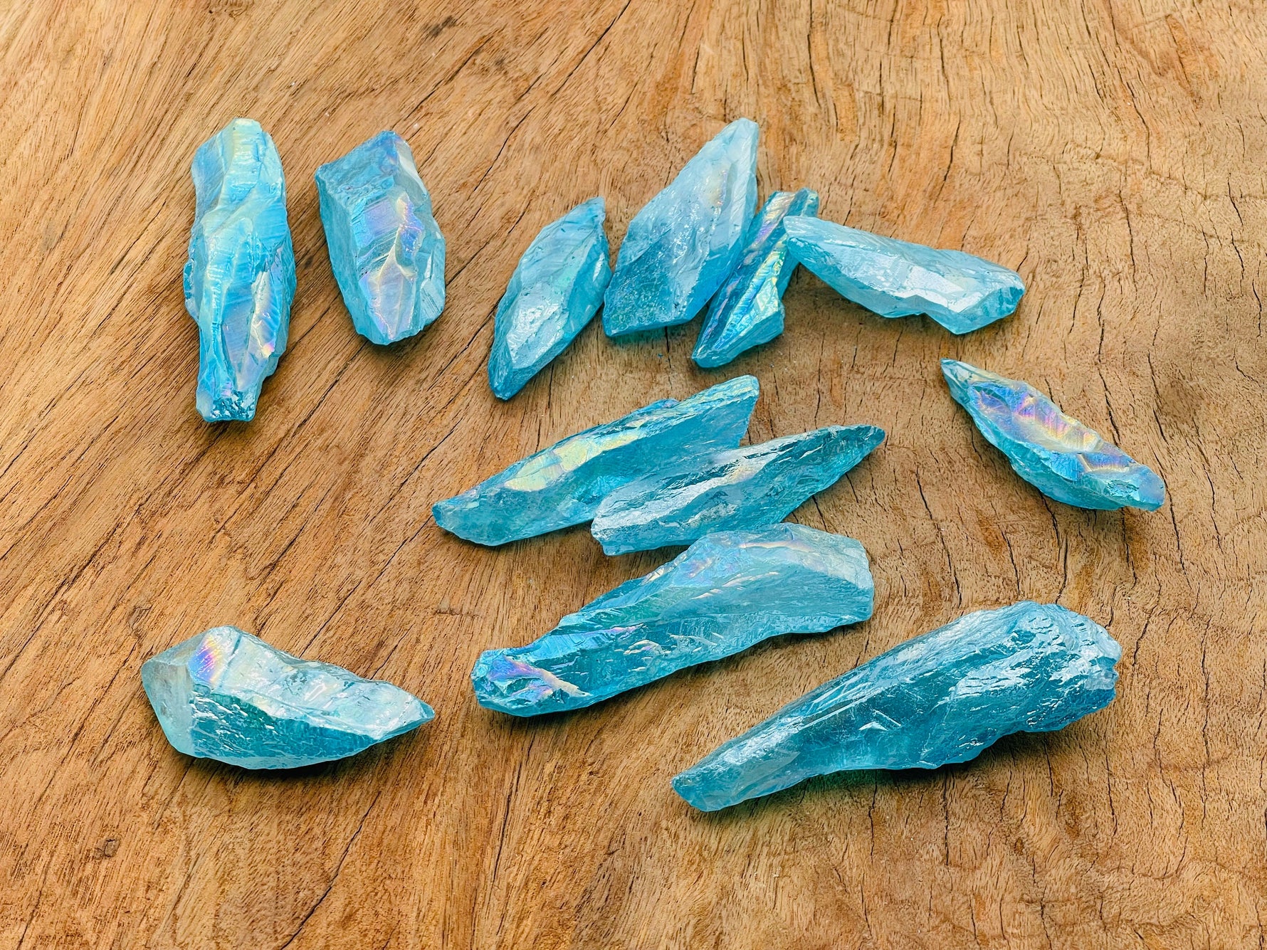 Pointe de quartz aura bleue ?€? Quartz aura bleue brute ?€? Cristal brut ?€? Morceaux de pierres - RA1244