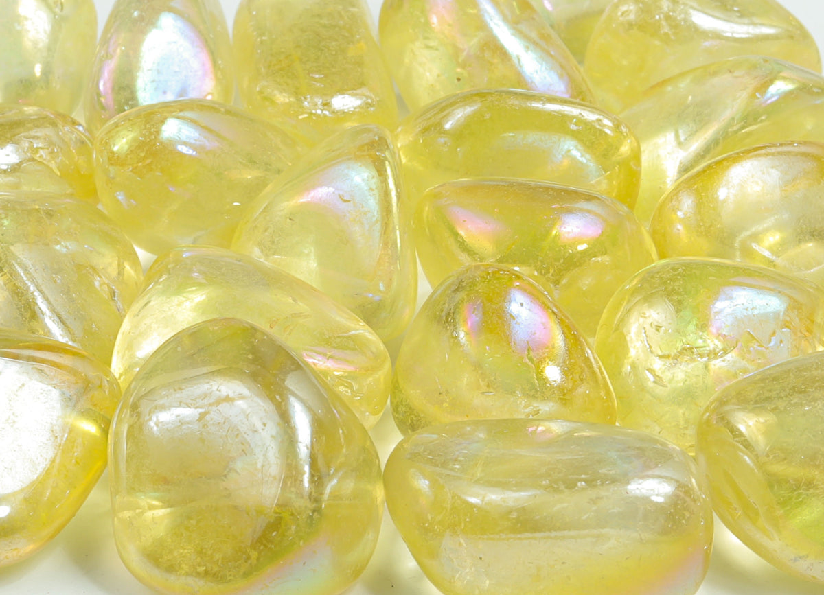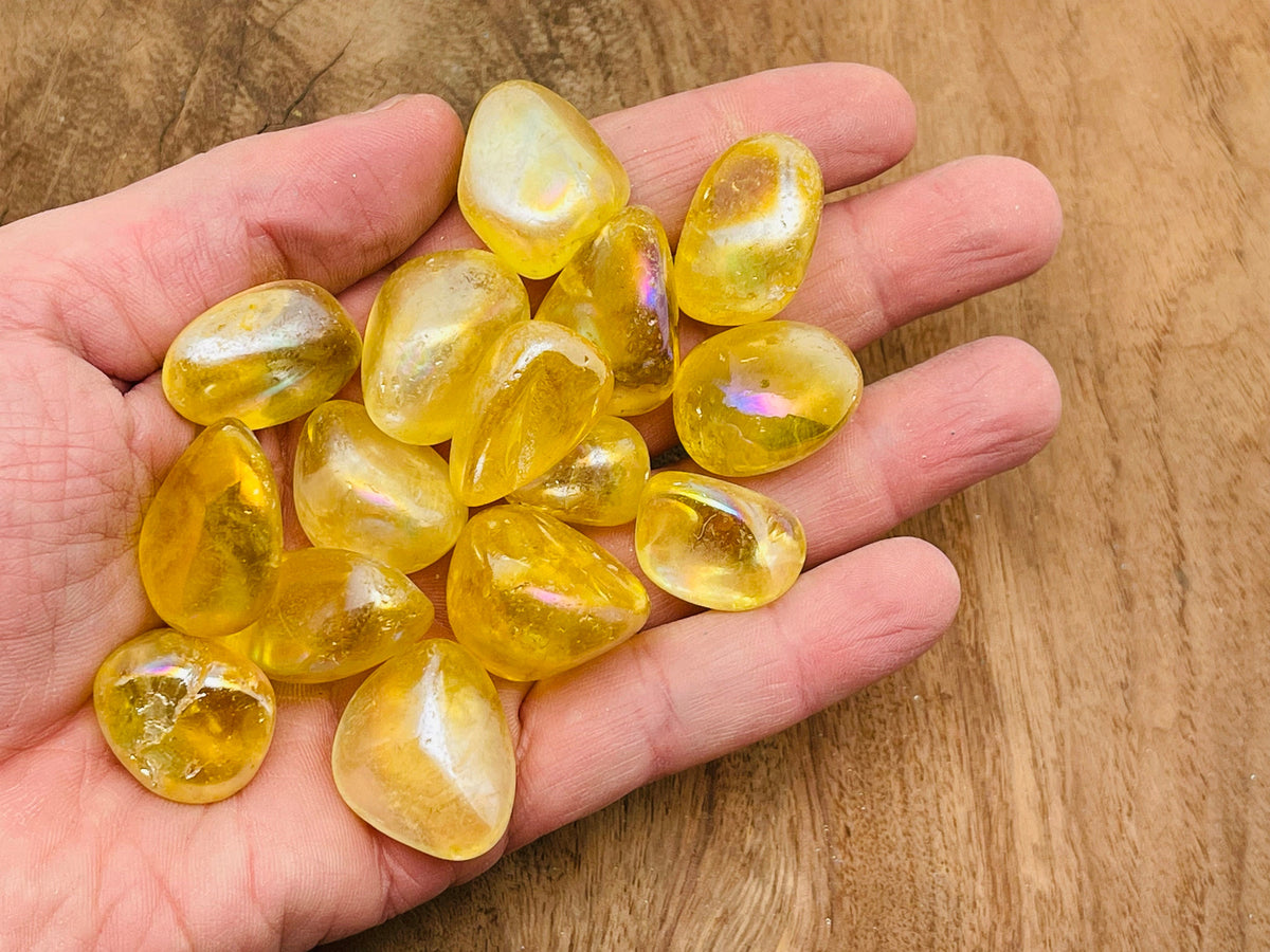 Quartz aura jaune roulé - TU1159