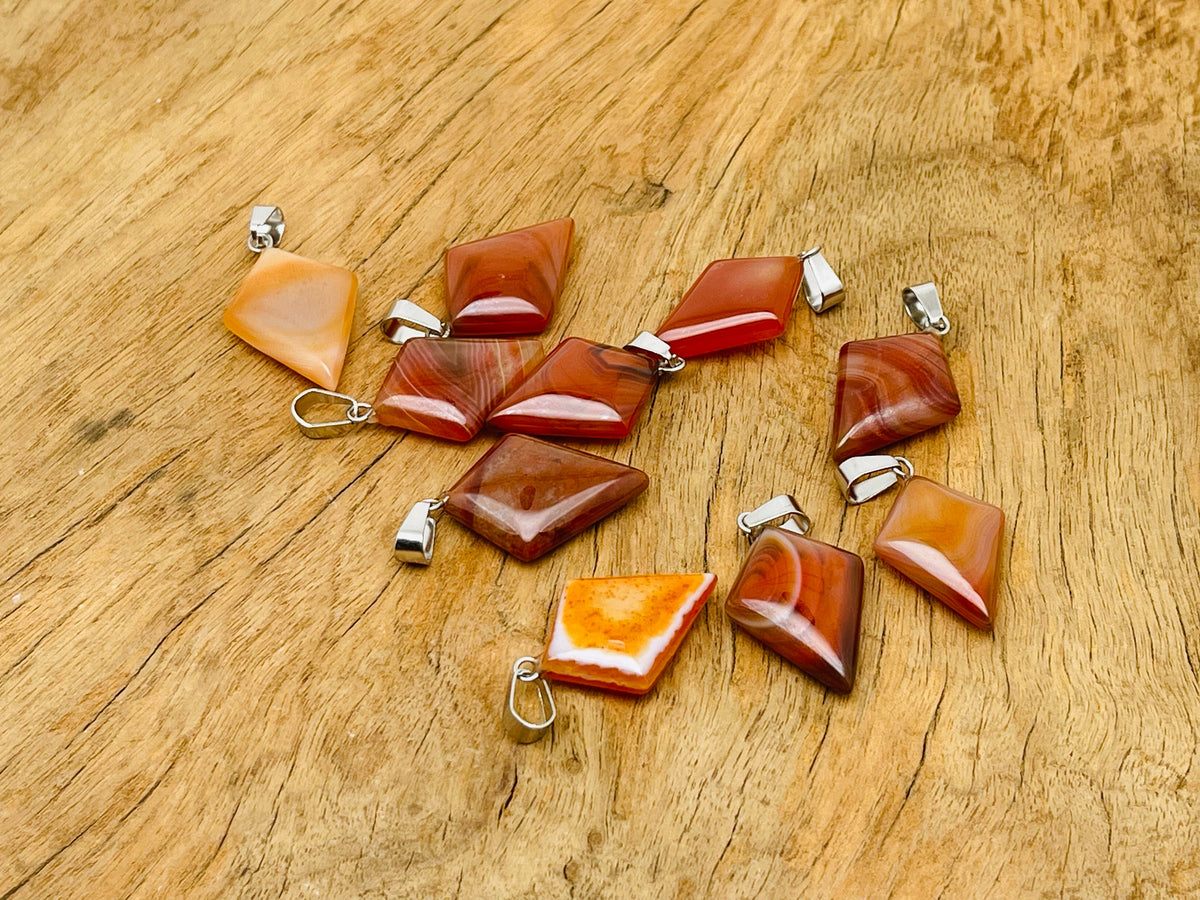 Pendentif en cornaline - Pendentif géométrique triangulaire en pierre précieuse - Bijou en pierre naturelle - Pendentif porte-bonheur pour femme - NC1351