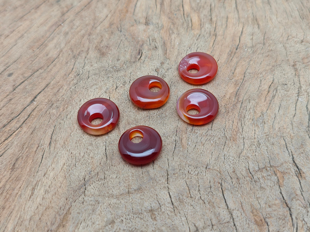 Pierre Pi en cornaline - Pierre Pi en cristal en forme de donut - Pierre Pi - Boucles d'oreilles en cristal - Pendentif porte-bonheur - 18 mm - DO1019