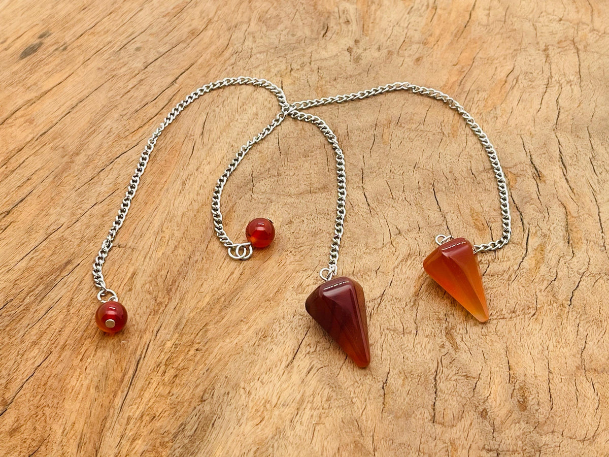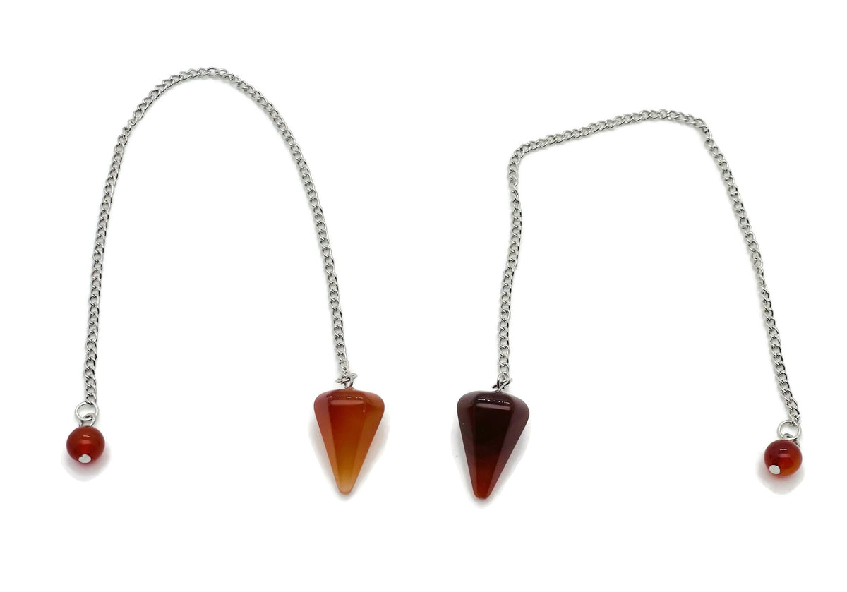 Collection de pendules en cristal de cornaline aux vertus curatives ?€? Pendule de divination en pierre précieuse avec chaîne en acier inoxydable - PE1004
