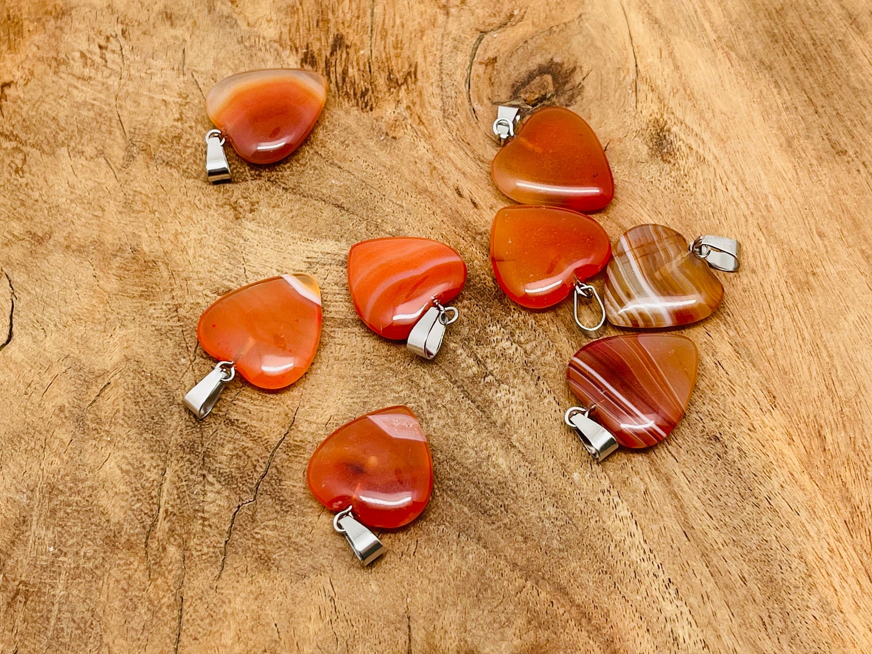 Pendentif Cœur en Cornaline - Pendentif Cristal de Guérison - Mini Pendentif Cristal - Cadeaux - BNC1007