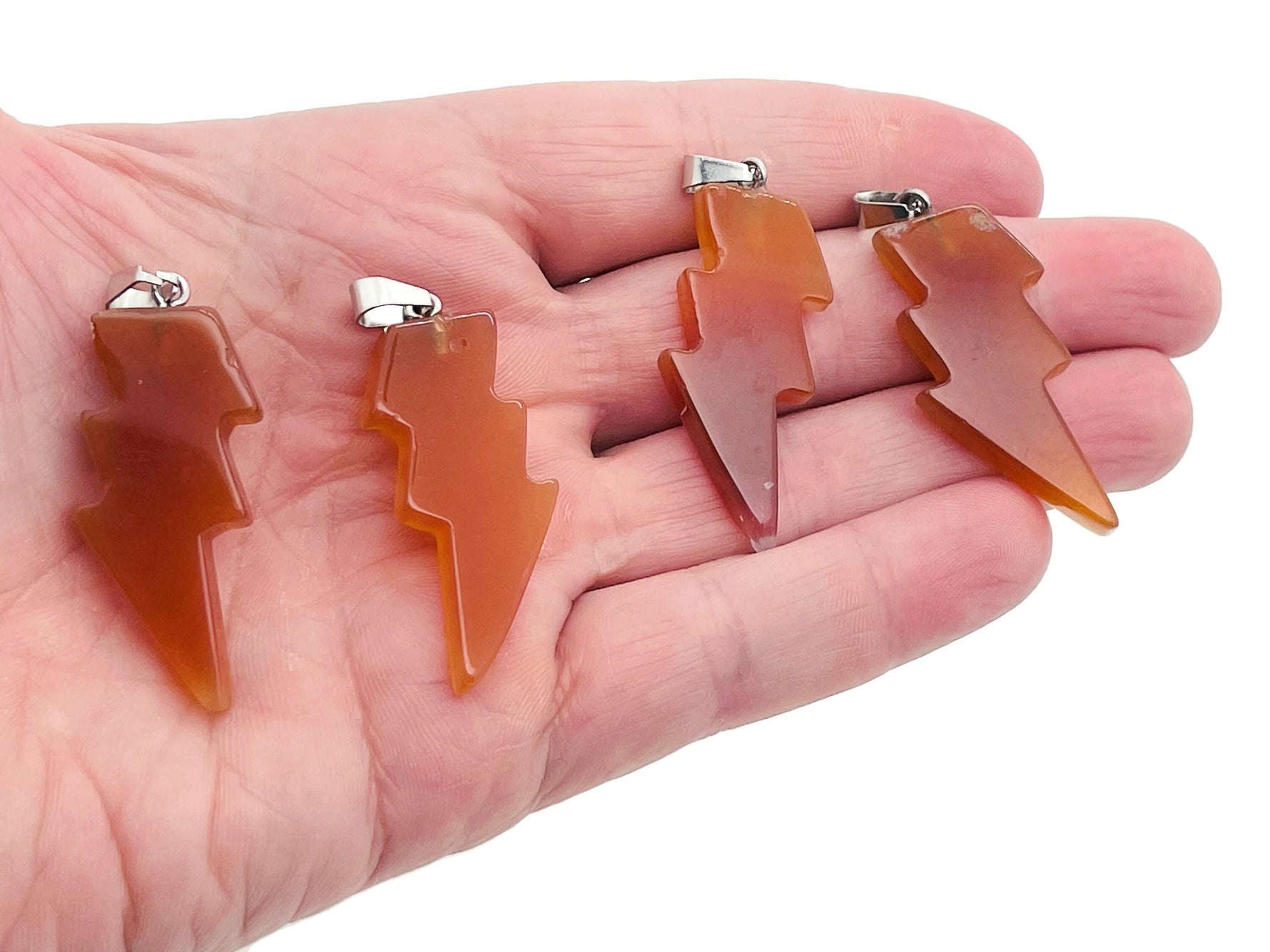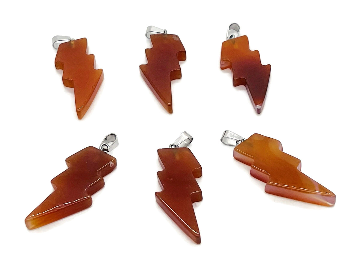 Pendentif Éclair en Cornaline - Cristal Éclair - Pierre Éclair - Sculpture sur Cristal - NC1158