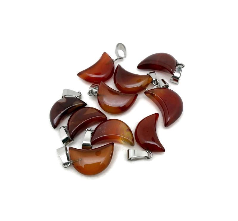 Pendentif Lune en Cornaline - Boucles d'oreilles Lune en Cristal - Lithologie - Fournitures pour la Création de Bijoux - MNC1020