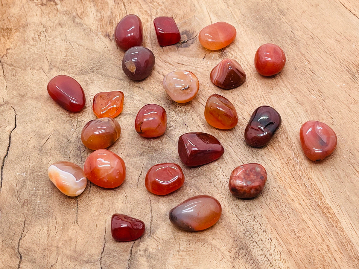 Pierre stabilisatrice, la cornaline redonne vitalité et motivation, et stimule la créativité. Elle insuffle le courage, encourage les choix de vie positifs, dissipe l'apathie et favorise la réussite. La cornaline soulage les douleurs lombaires, les rhumatismes, l'arthrite, les névralgies et la dépression. Symboliquement, la cornaline est associée à la santé, la chance et la royauté. Elle se marie à merveille avec de nombreux cristaux à haute vibration.