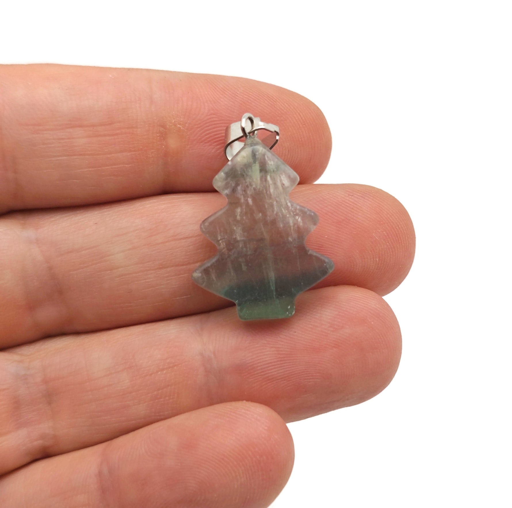 Prix unitaire / parBijoux en cristal, Collier en cristal, Pendentif en cristal, Cadeau pour elle, Pendentif en pierre précieuse, Pendentifs, Collier en pierre précieuse, Pendentif sapin, Collier sapin, Pin sculpté, Pendentifs arbre, Pendentif en fluorite, Pin en fluorite