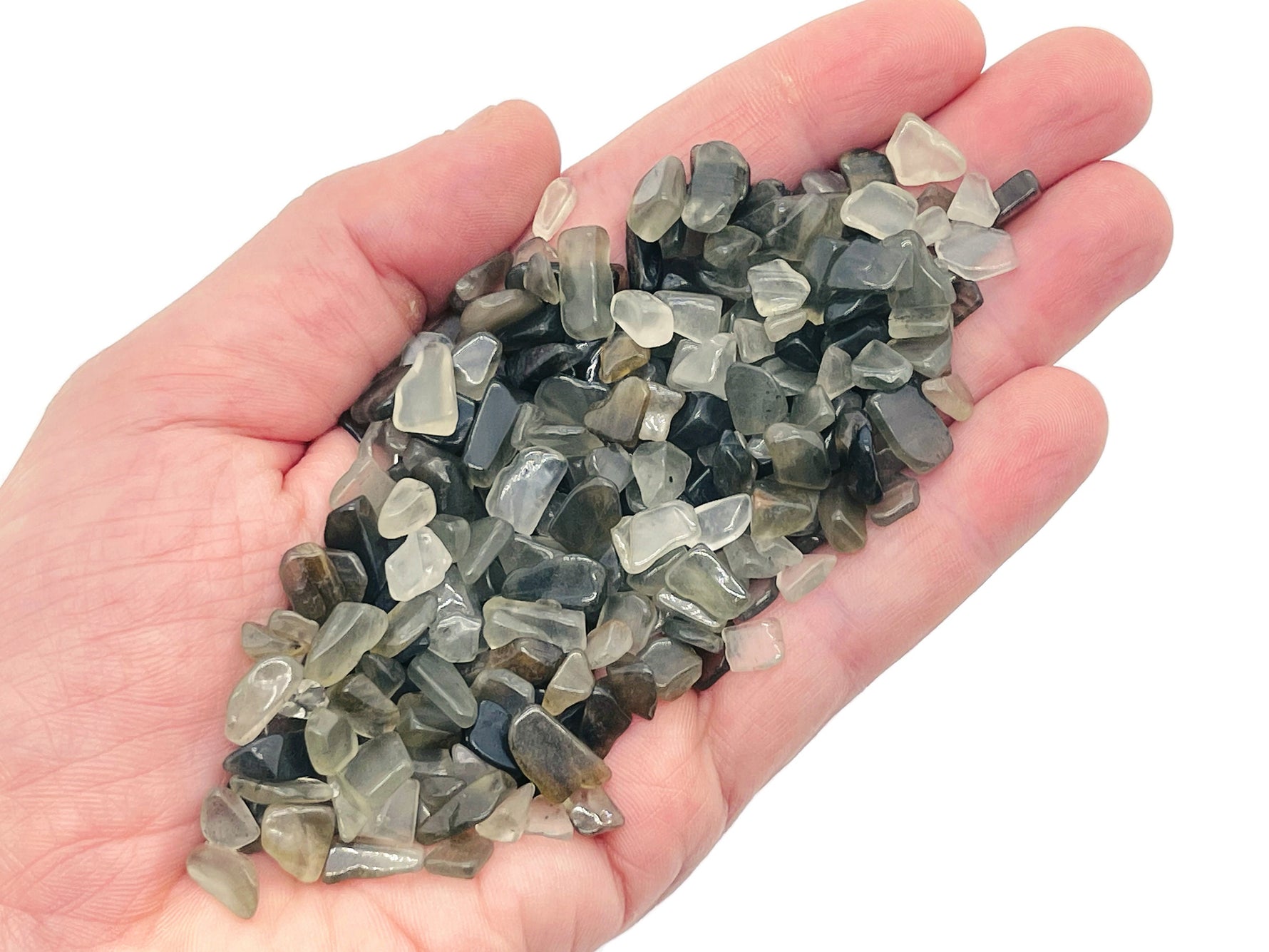 pierres précieuses, éclats de cristal, éclats polis, éclats de cristal en vrac, éclats de cristal bruts, mini-cristal, rutile vert, éclats de rutile, pierre précieuse, pierre verte, pierre de guérison, litière pour chat