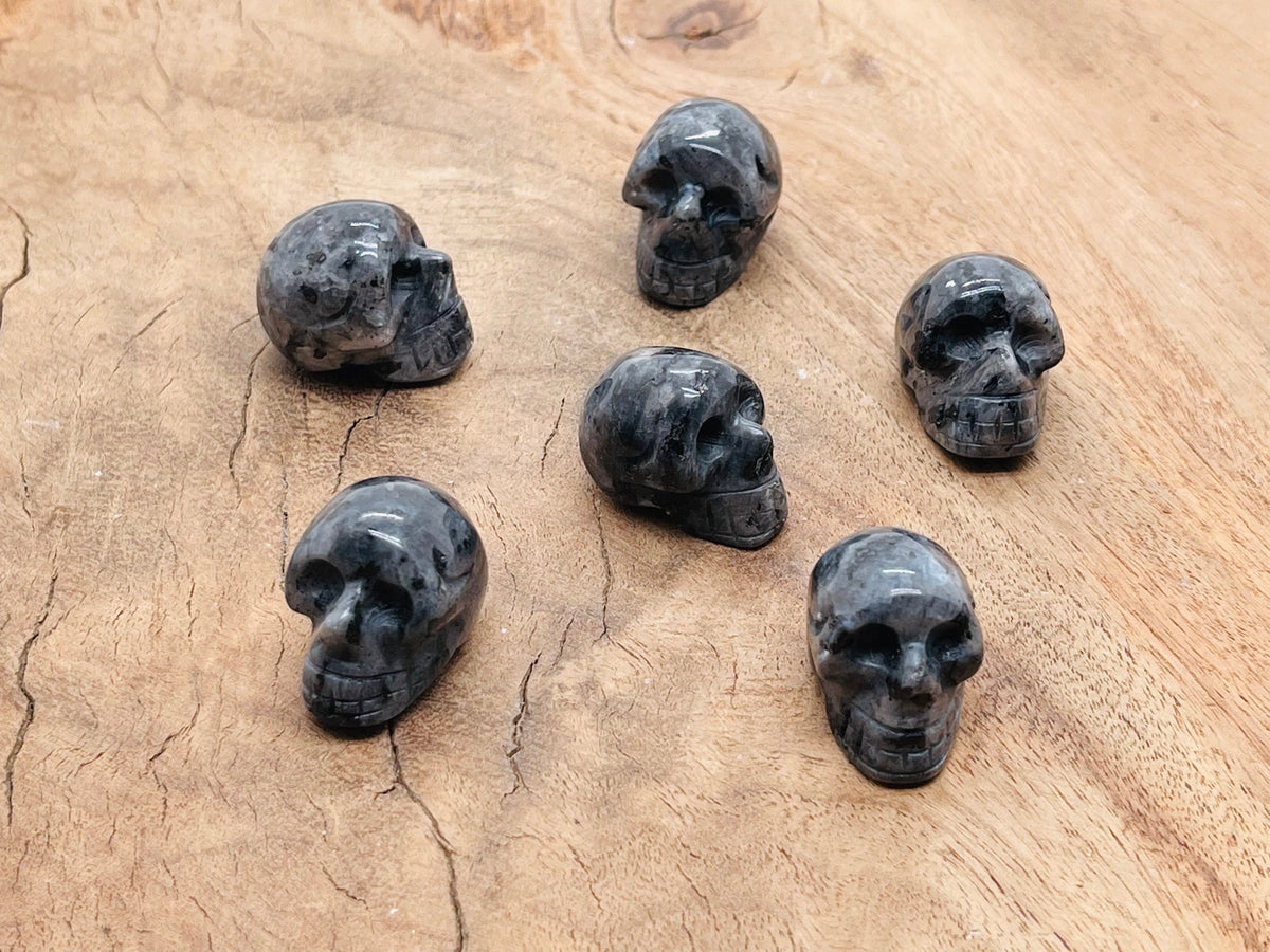 Pierre précieuse en larvikite en forme de crâne - Crâne sculpté - Pierre de guérison - 2,5 cm - SK1012