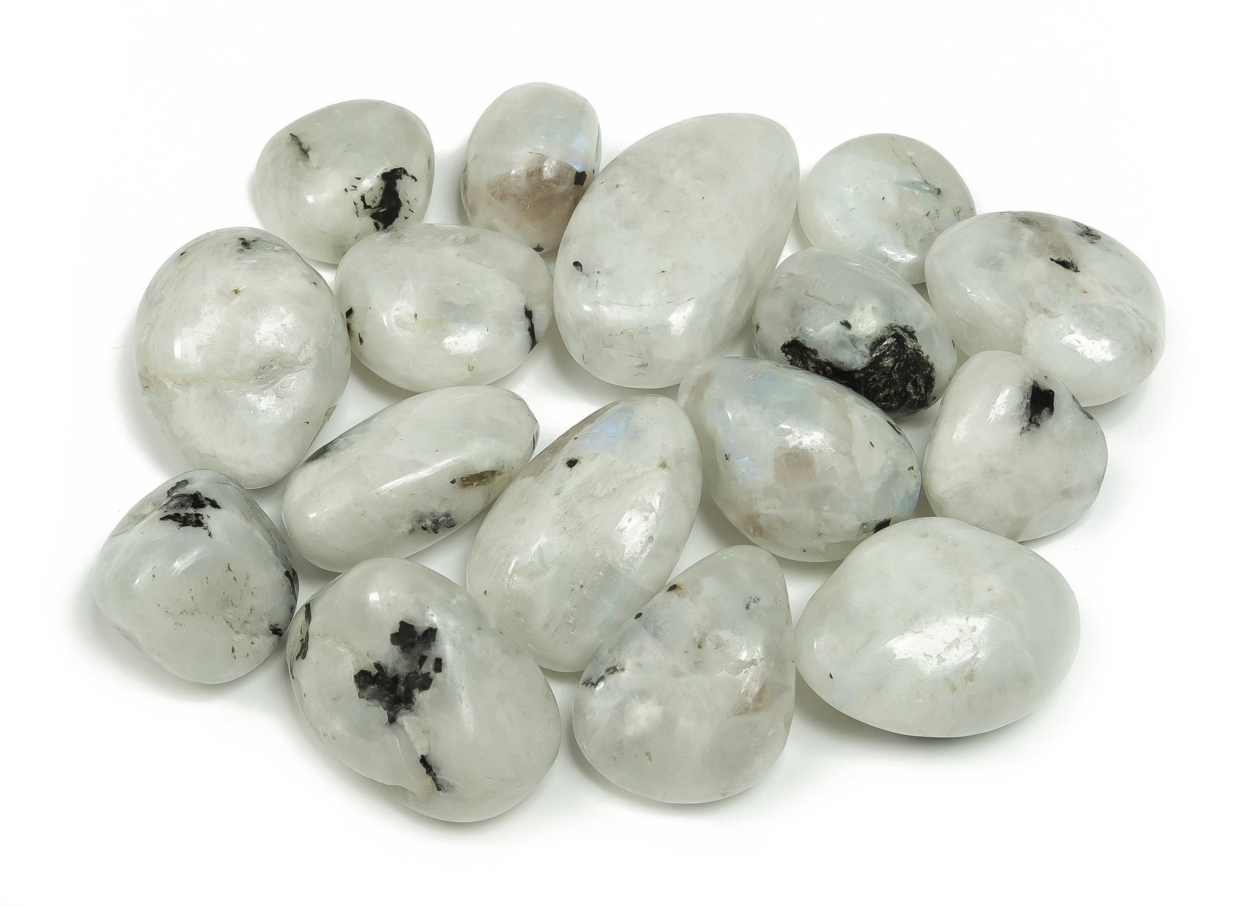 Nos pierres roulées de pierre de lune arc-en-ciel sont 100 % naturelles et authentiques. La pierre de lune arc-en-ciel roulée renforce le système immunitaire, purifie le sang, abaisse la tension artérielle et apaise les inflammations. Elle soulage l'insomnie et les vertiges et combat la dépression. On lui attribue également des vertus protectrices contre les influences négatives.