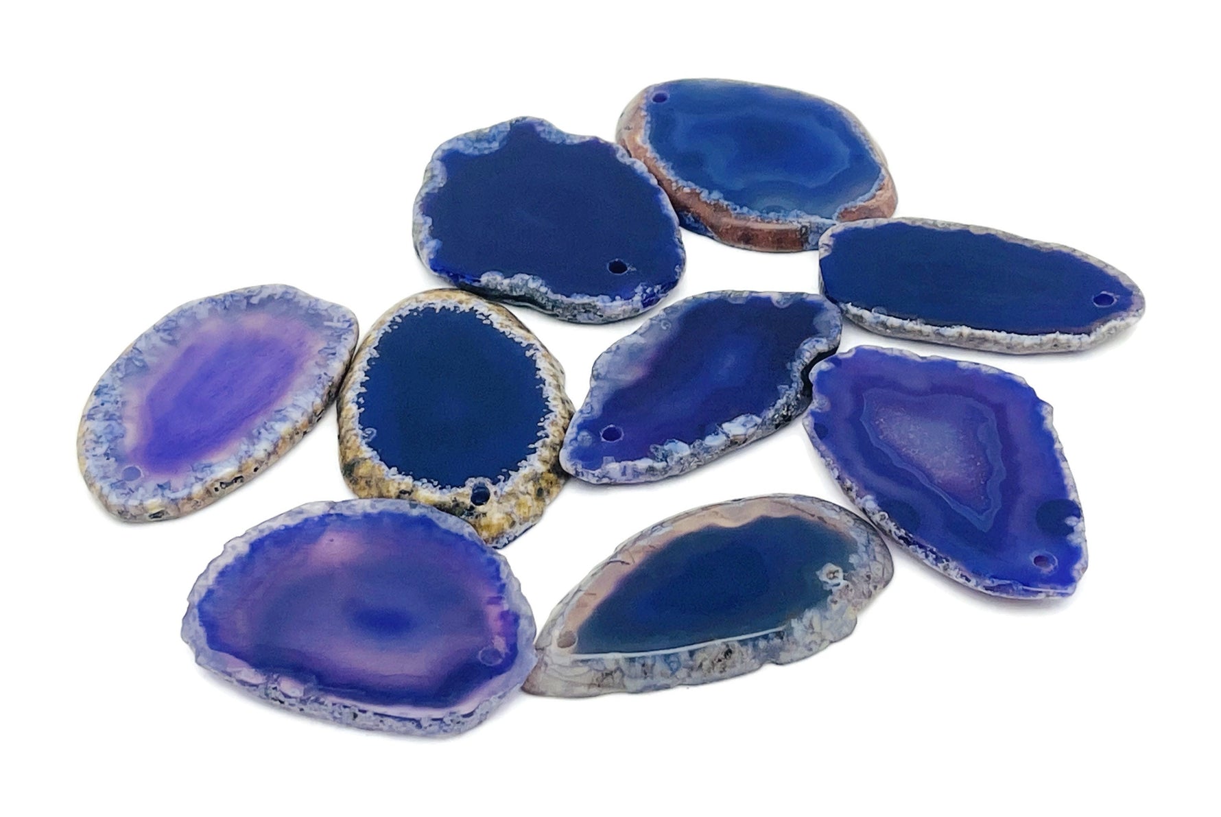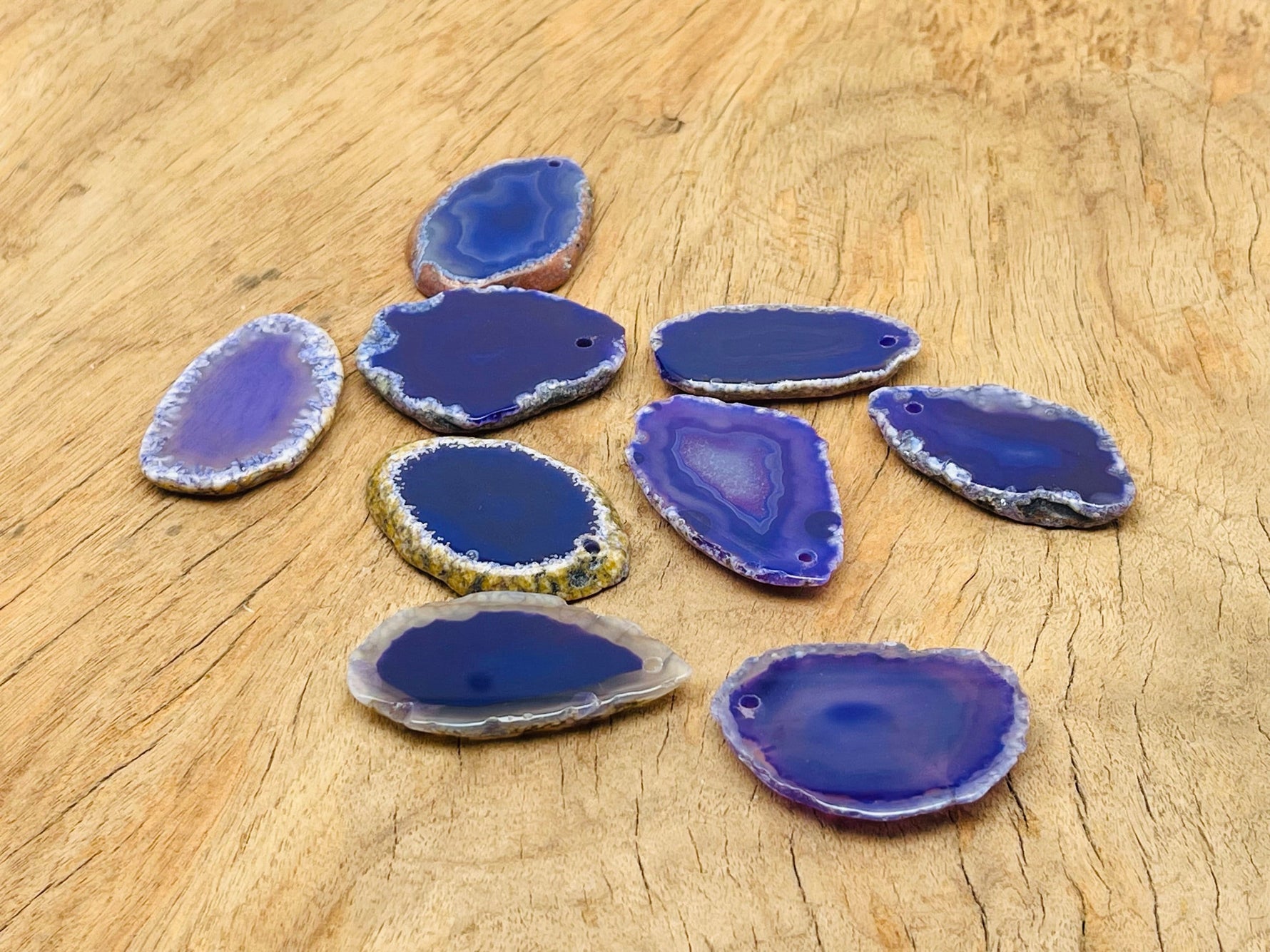 Prix unitaire / paragate, tranche d'agate naturelle, tranche d'agate, pendentif en agate, tranches d'agate percées, bijoux en agate, agate percée sur le dessus, agates percées, tranche d'agate perforée, plaques, agate percée, agate violette, trou dans l'agate violette