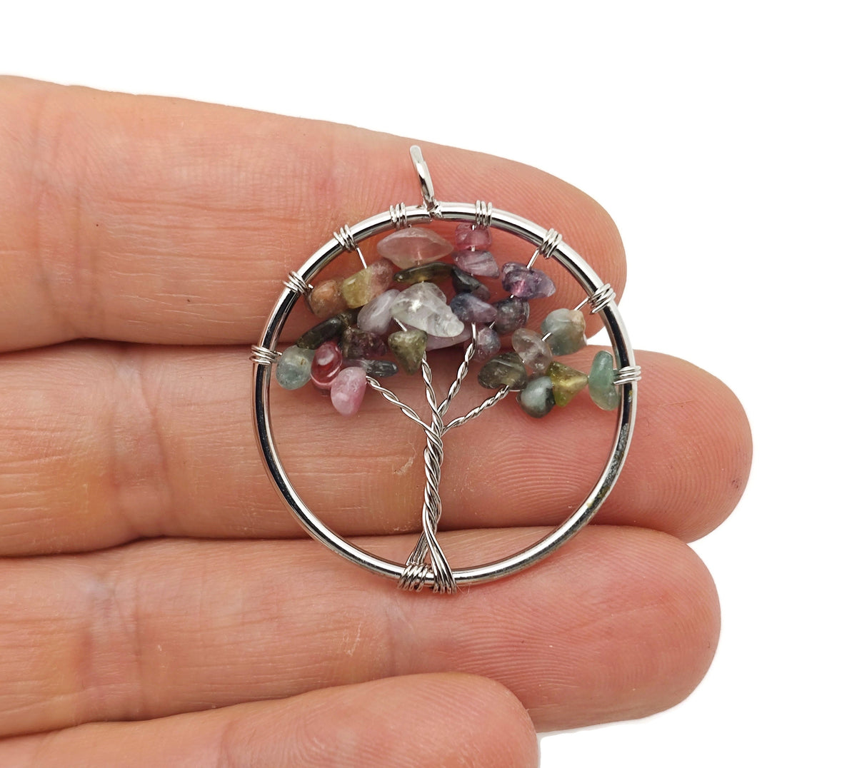 Pendentifs Arbre de Vie en Tourmaline Arc-en-ciel - Cristaux en gros - Bijoux Arbre de Vie en Cristal faits main - Pendentifs de Guérison - NC1577