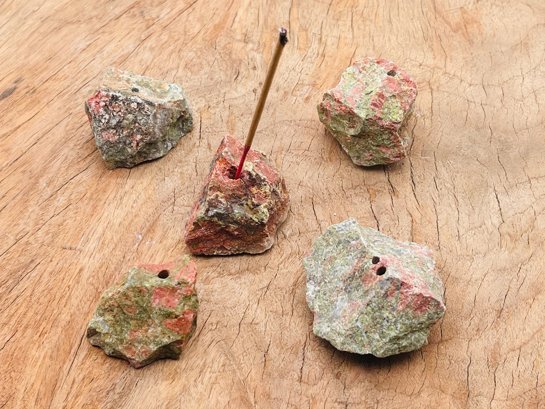 Porte-encens en cristal d'unakite - Porte-encens en pierre brute - Pierre de guérison - RS1023