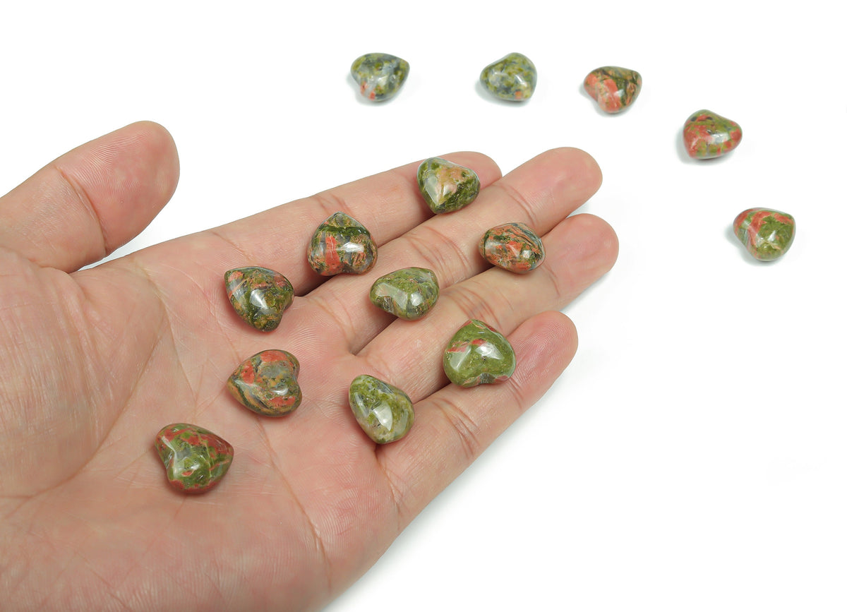 Pierre précieuse en forme de cœur d'unakite - Pierre de poche en forme de cœur - Cristaux de guérison - Pierre bienfaisante - Cœurs en cristal - 15 x 15 x 9 mm - HE1022