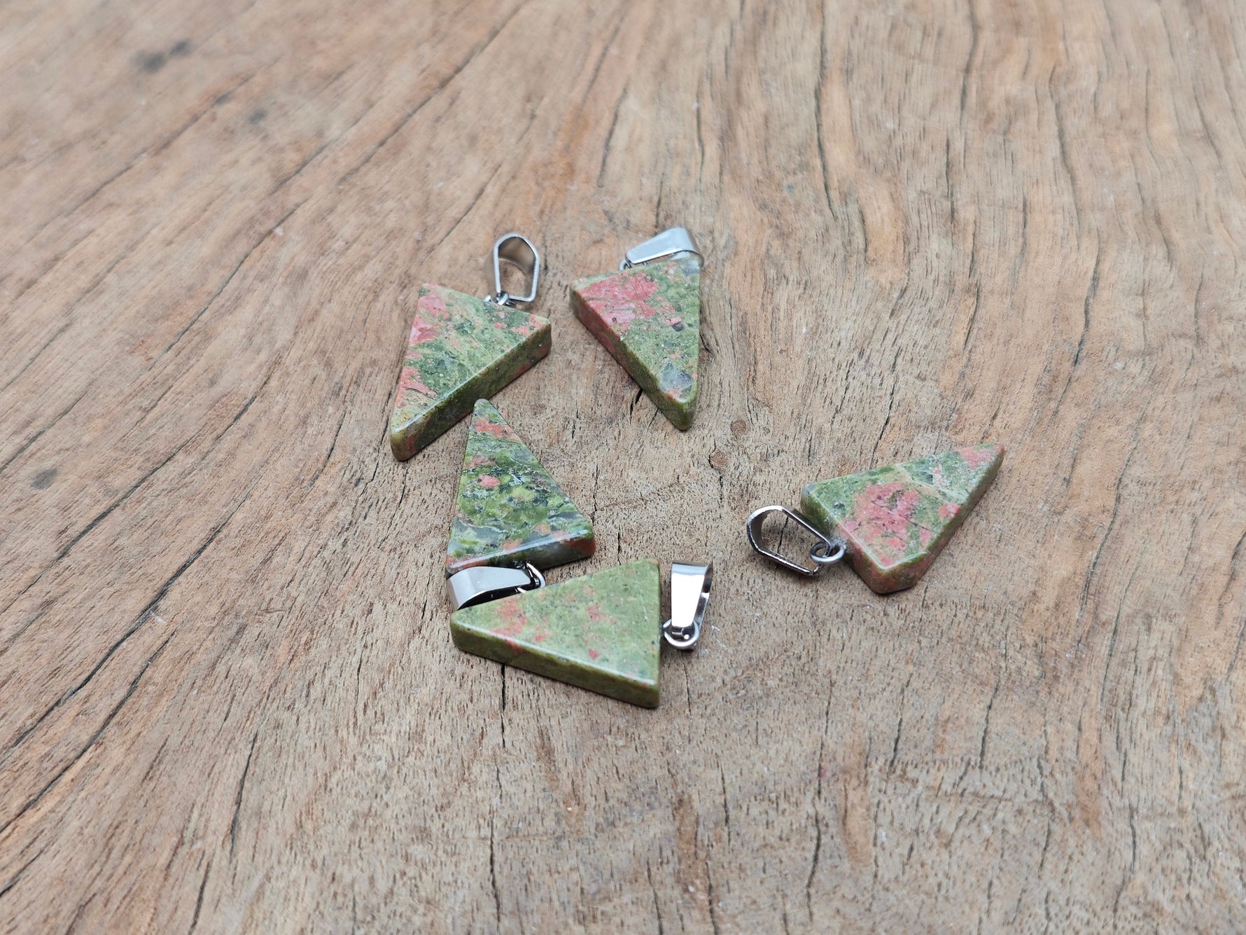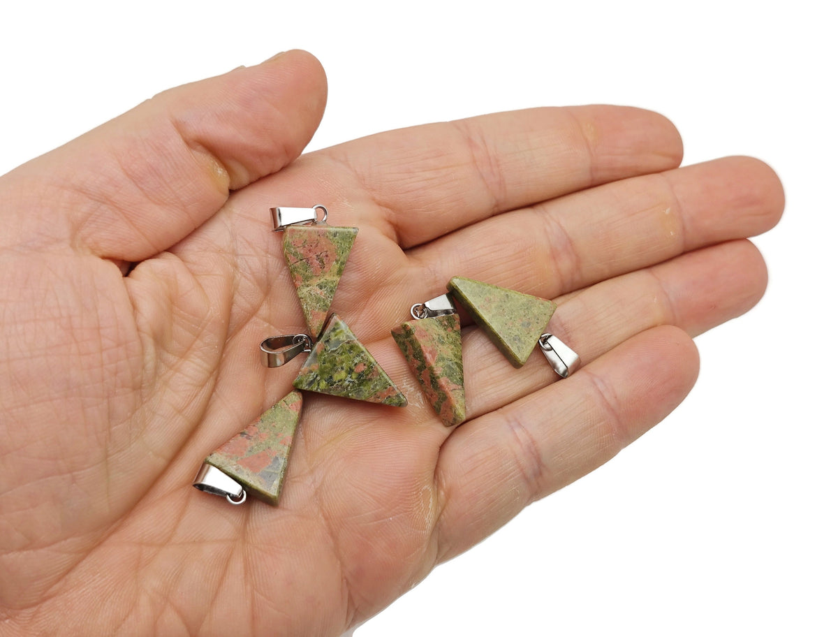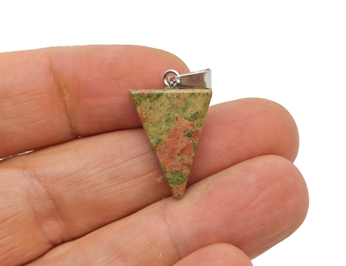 Pendentifs triangulaires en unakite - Collier triangulaire en pierre précieuse - Création de bijoux pendentifs - Vente en gros - NC1623