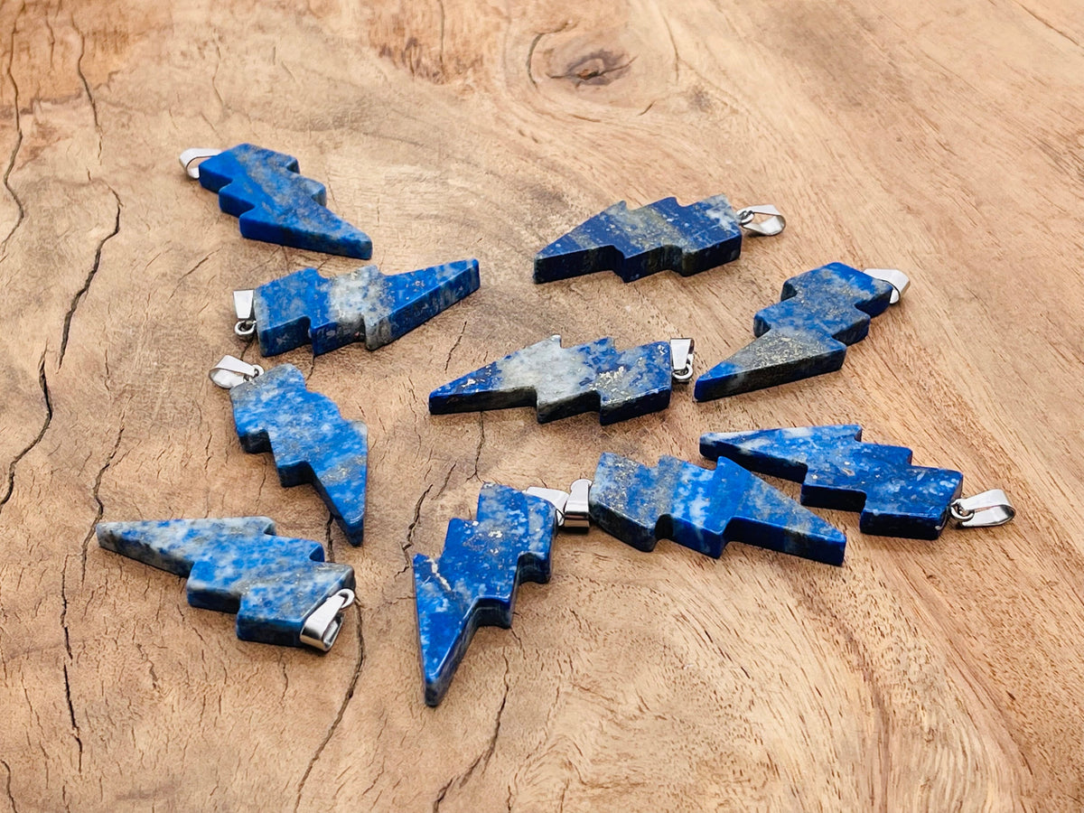 Pendentif éclair en lapis-lazuli - Cristal éclair - Pierre éclair - Sculpture sur cristal - NC1145