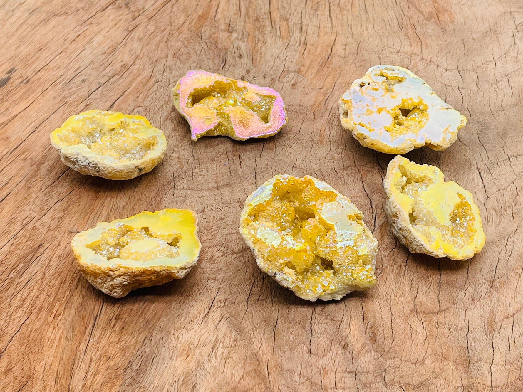 Yellow Aura Oco Agate Geode Raw Crystal - RA1157