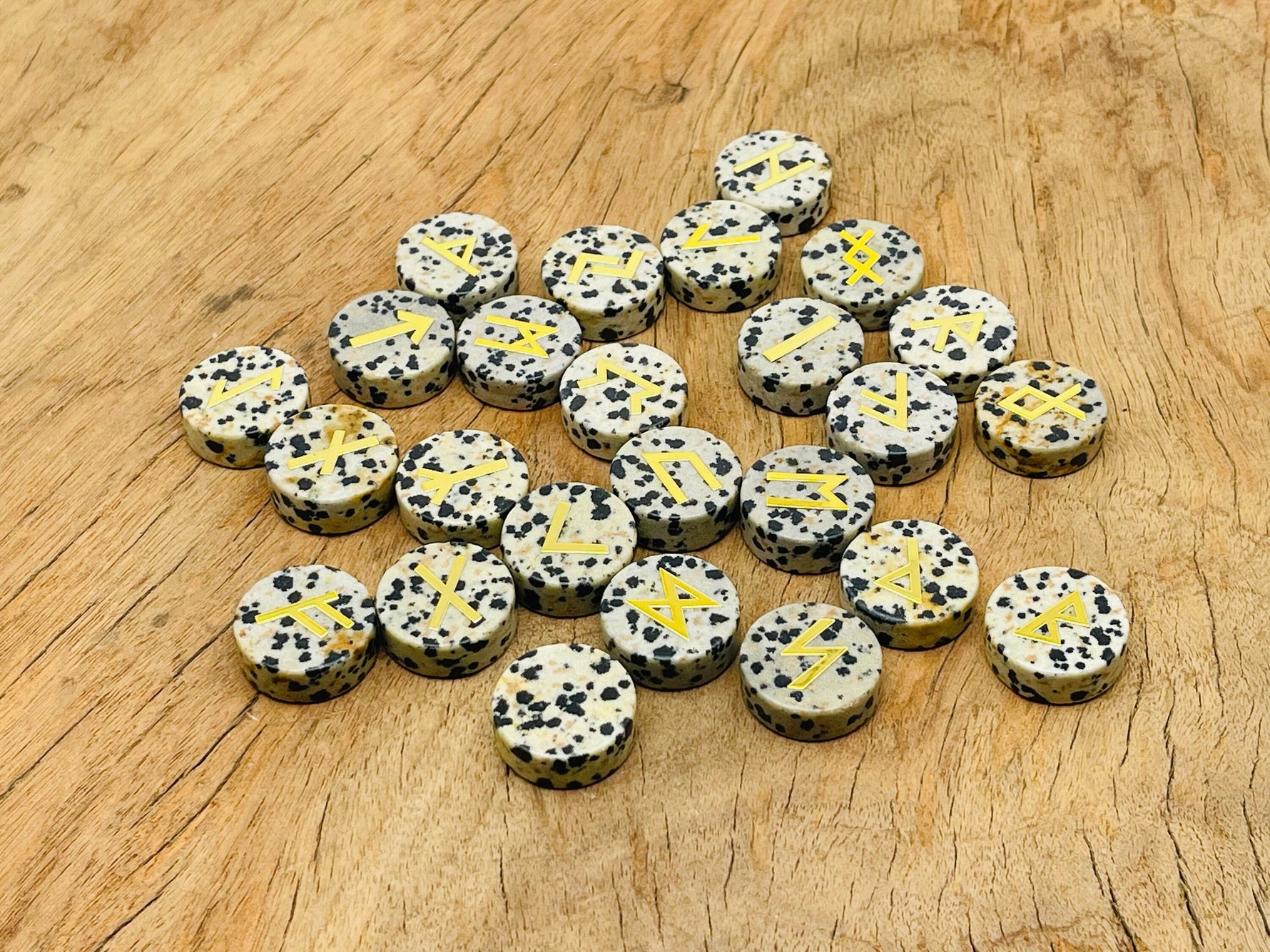 Dalmatian Jasper Crystal Rune Stone - Elder Futhark Alphabet Engraved 25 pcs Runes Set - Crystal Kit - RU1008