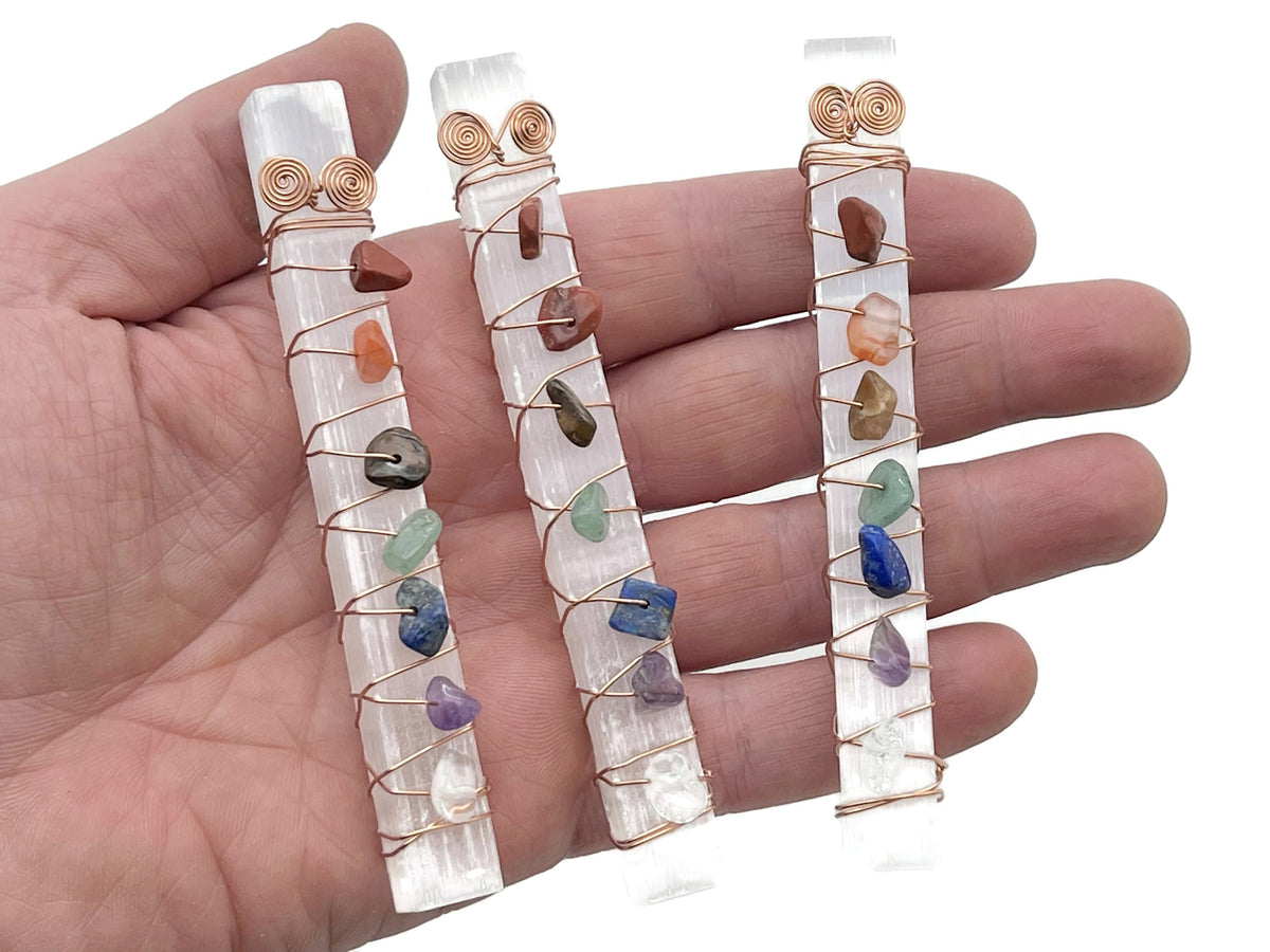 Natural 7 Chakra Selenite Sticks - Chakra Meditation Ornament - Crystal Kit - CH1002