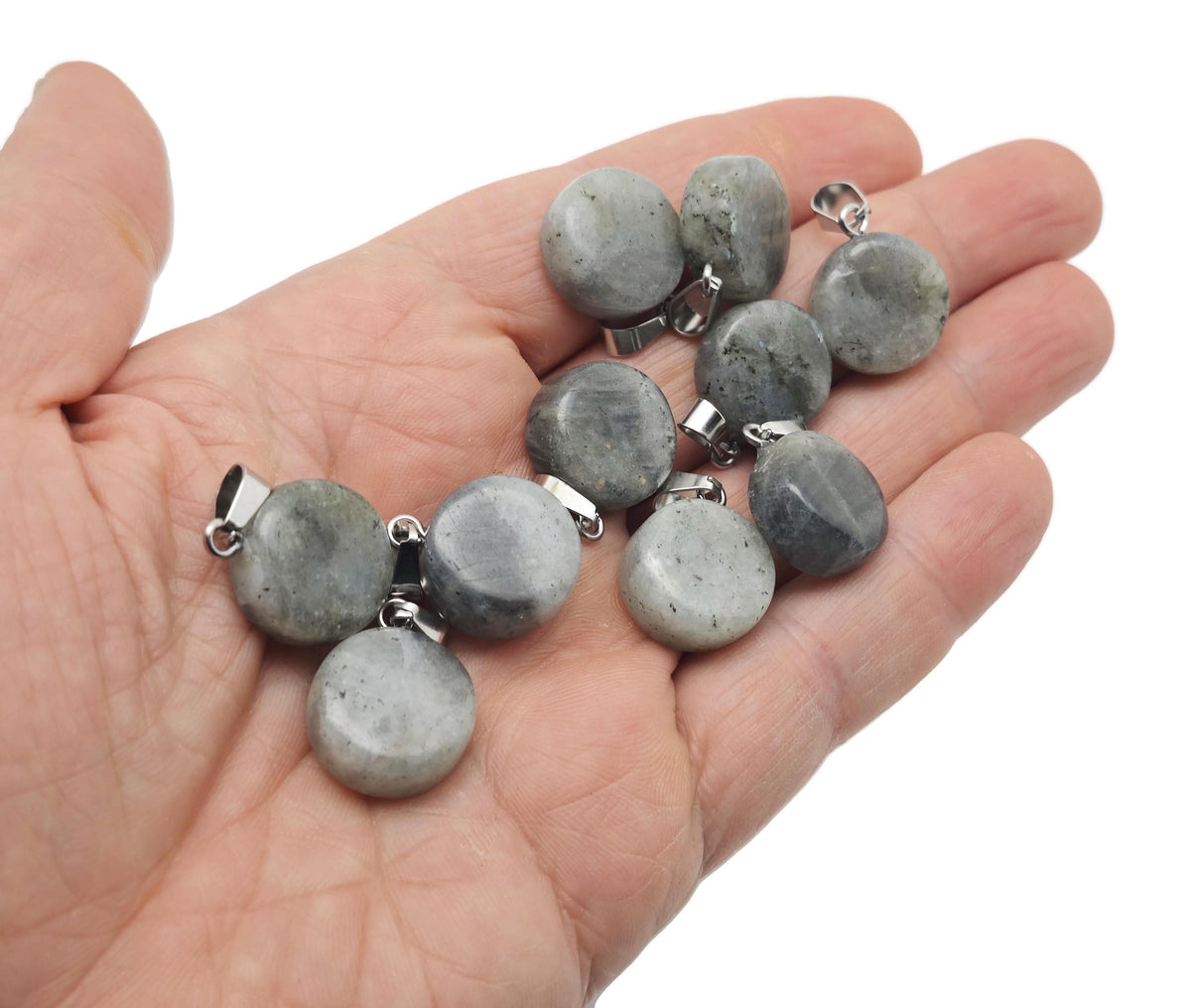 Labradorite Flat Round Gemstone Pendant - Crystal Round Coin - NC1687