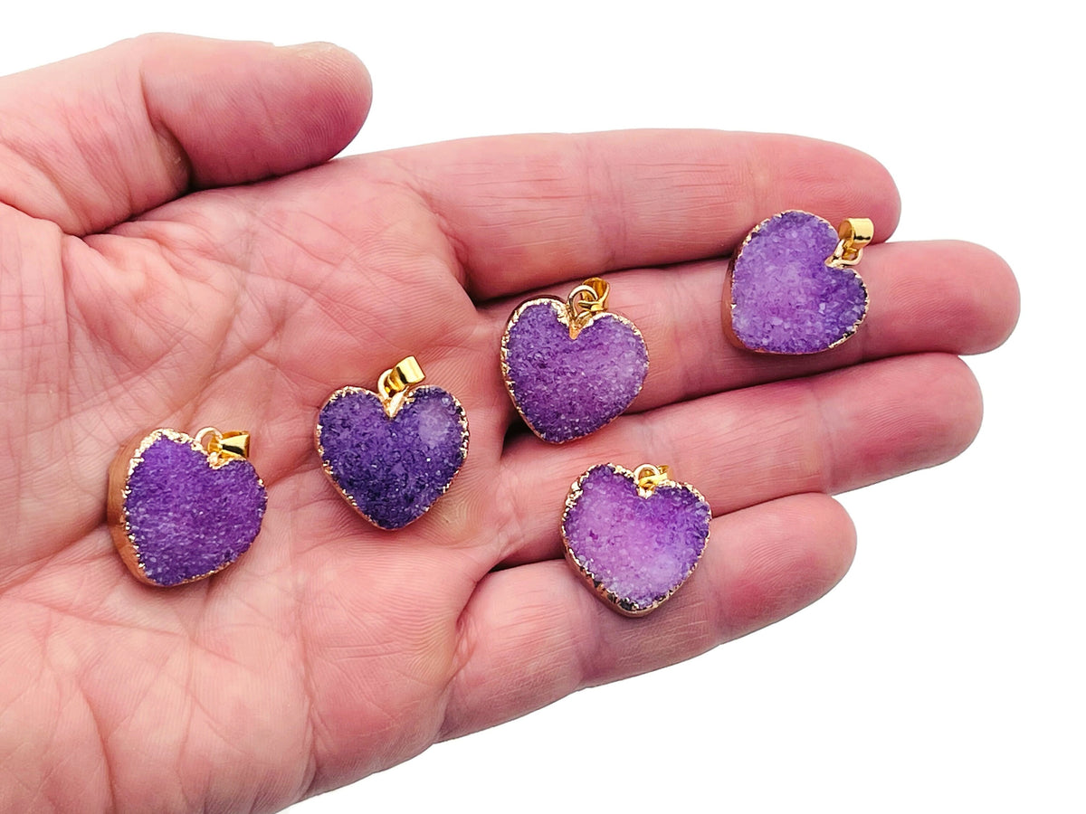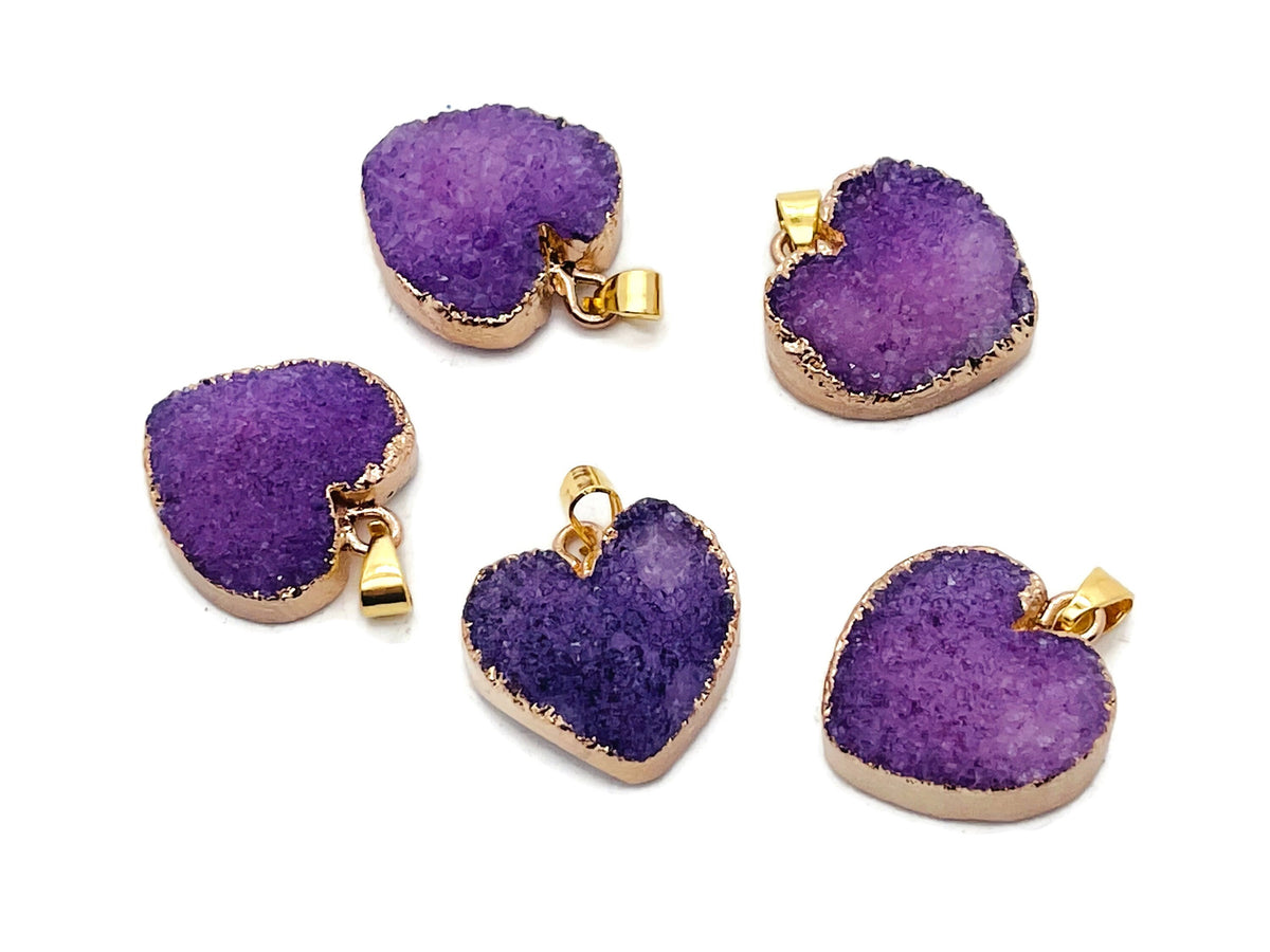 Purple Agate Heart Geode Druzy Slice Crystal Pendant - Oco Agate Geode Pendant - NC1261