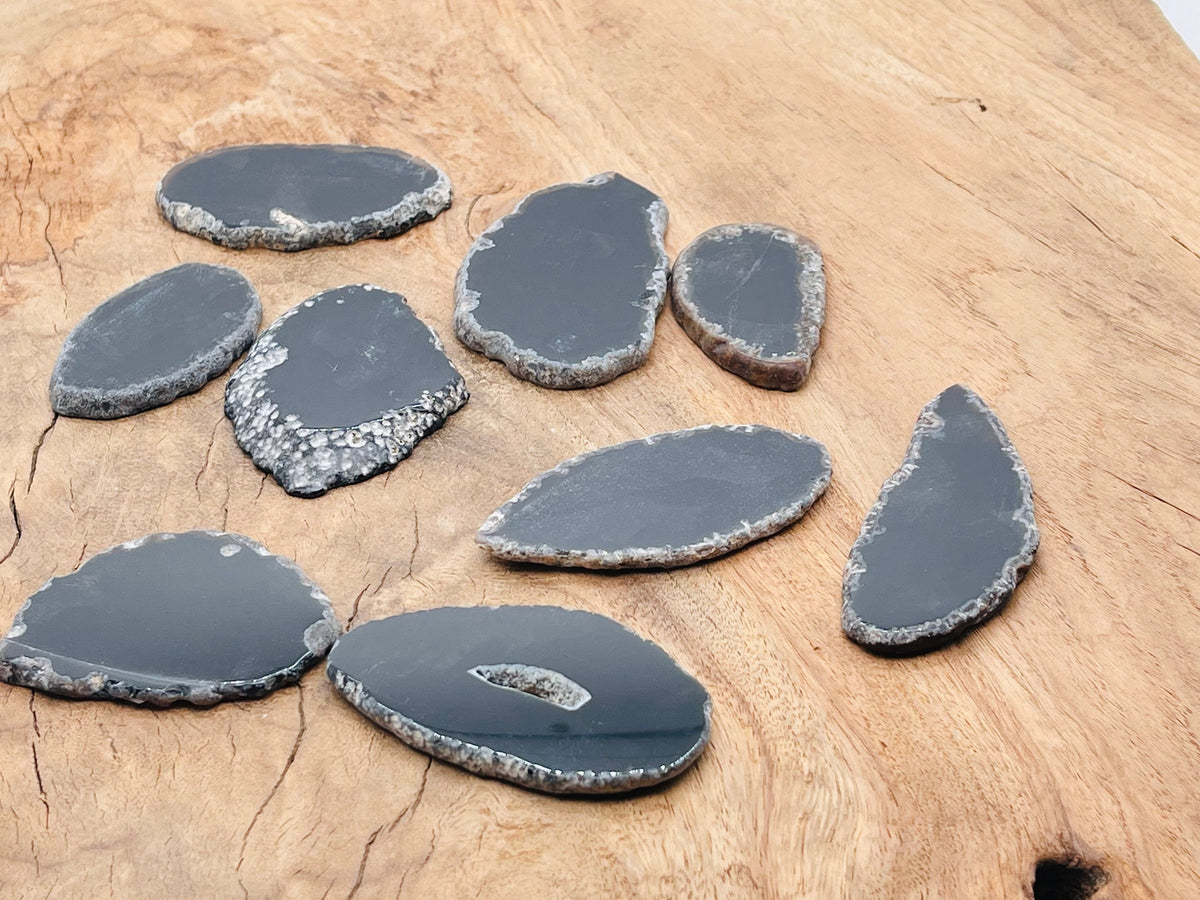 Black Agate Slice - Raw Geode Crystal - RA1178