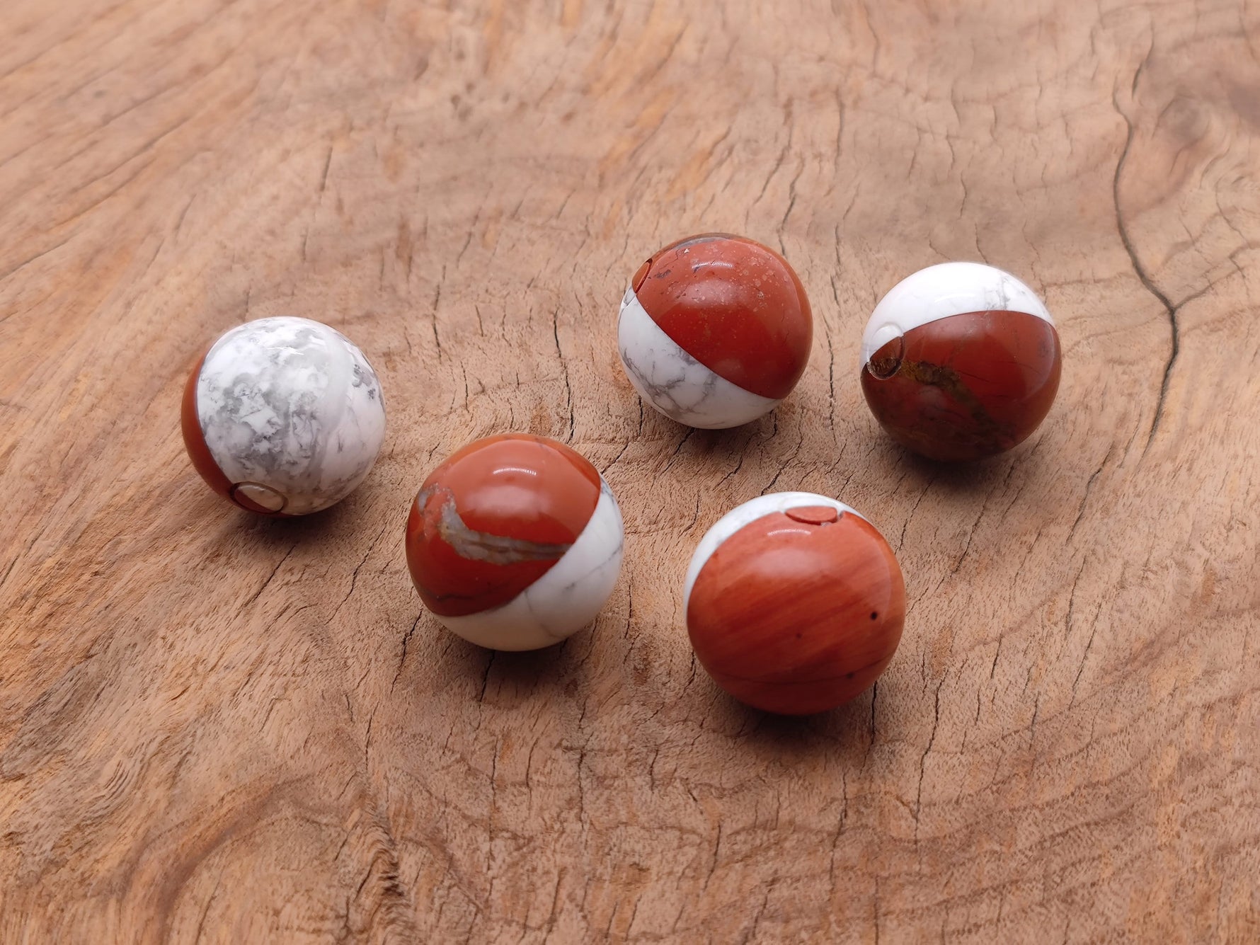PokeBall Sphere Gemstone - Howlite with Red Jasper - Crystal Ball - 30mm - SP1138