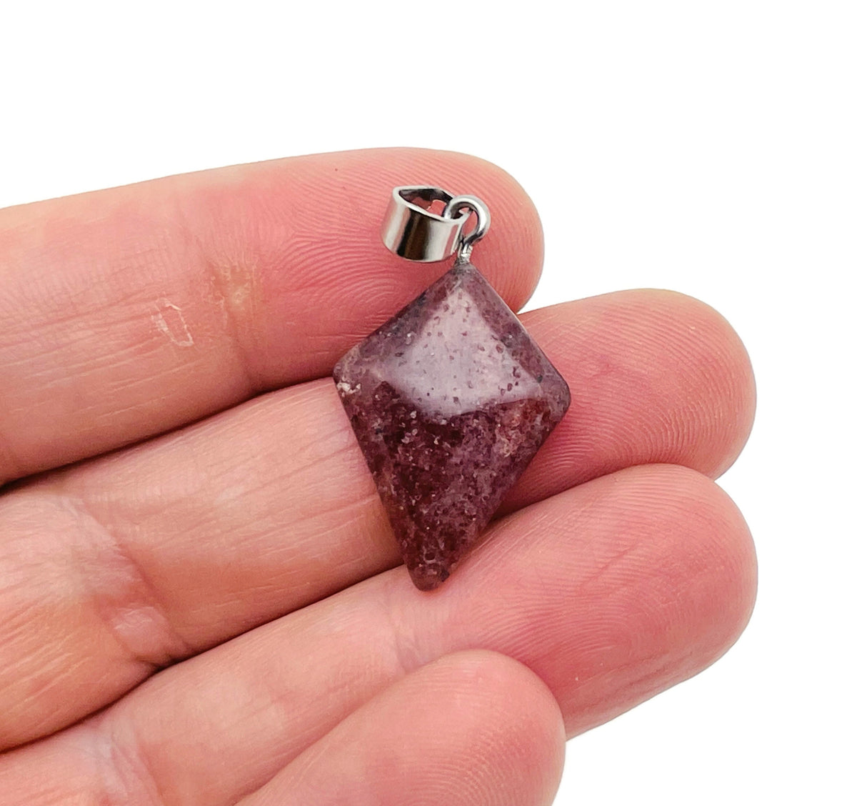 Strawberry Quartz Triangle Gemstone Pendant - Geometric Gemstone - NC1338
