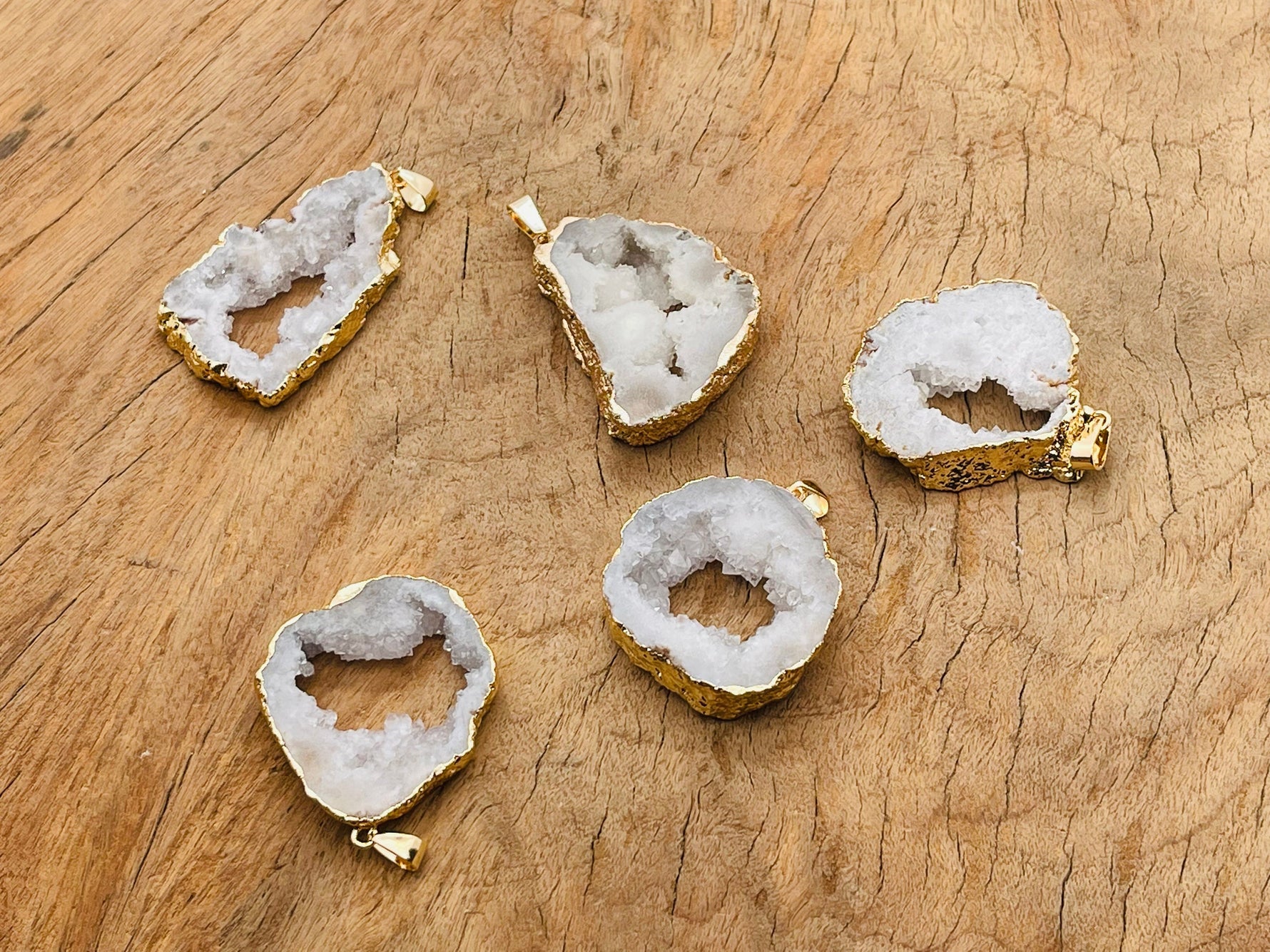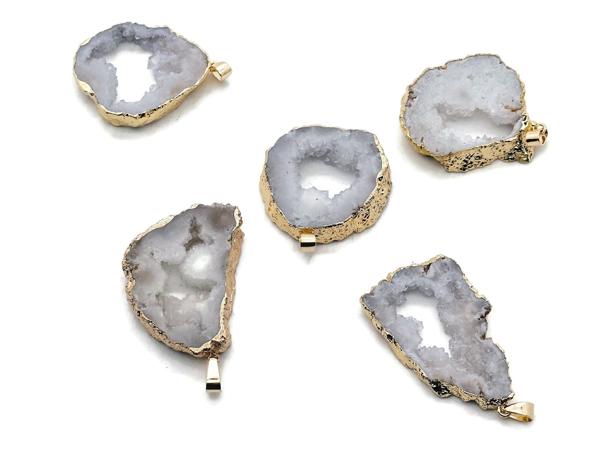 White Agate Geode Druzy Slice Crystal Pendant - Oco Agate Geode Pendant - NC1253