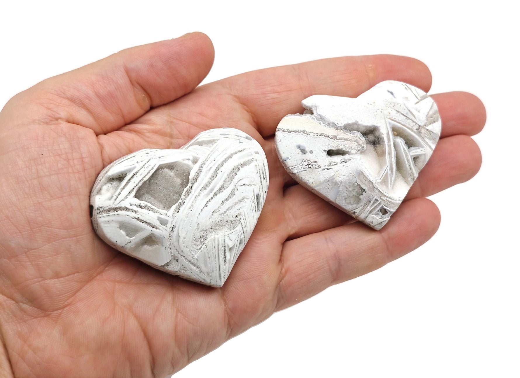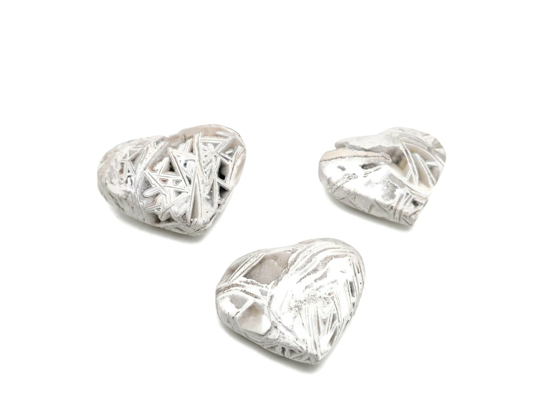 White Agate Heart Gemstone - Mexican White Agate Crystal - HE1284